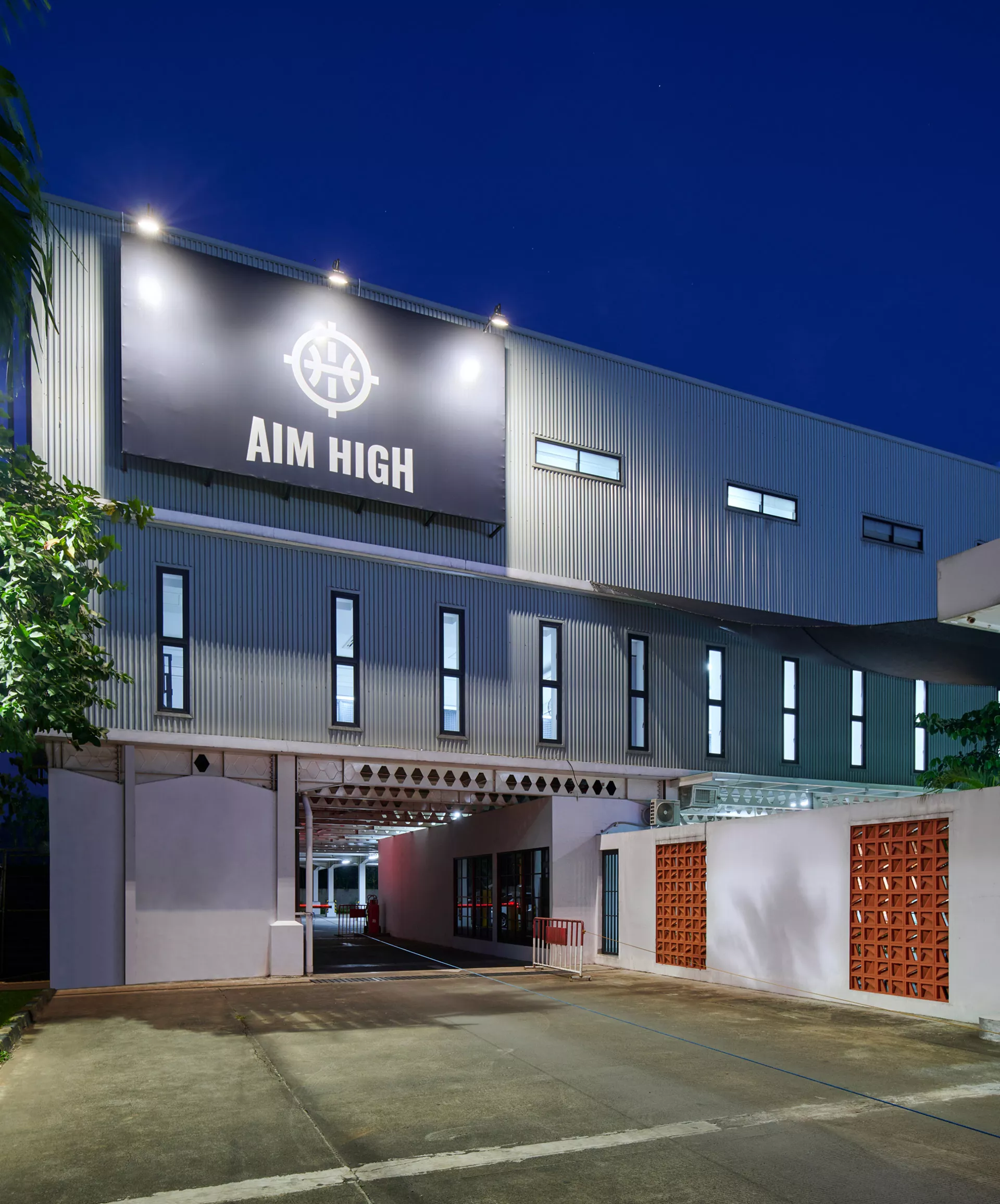 Conceived as the home of the client’s basketball club, the stadium accommodates two full-sized courts and seating for roughly 400 spectators. Its architecture responds directly to the constraints and opportunities of its site. The courts are elevated one storey above ground, a deliberate move to lift the primary activity away from roadside noise while creating an open, flexible plane beneath.