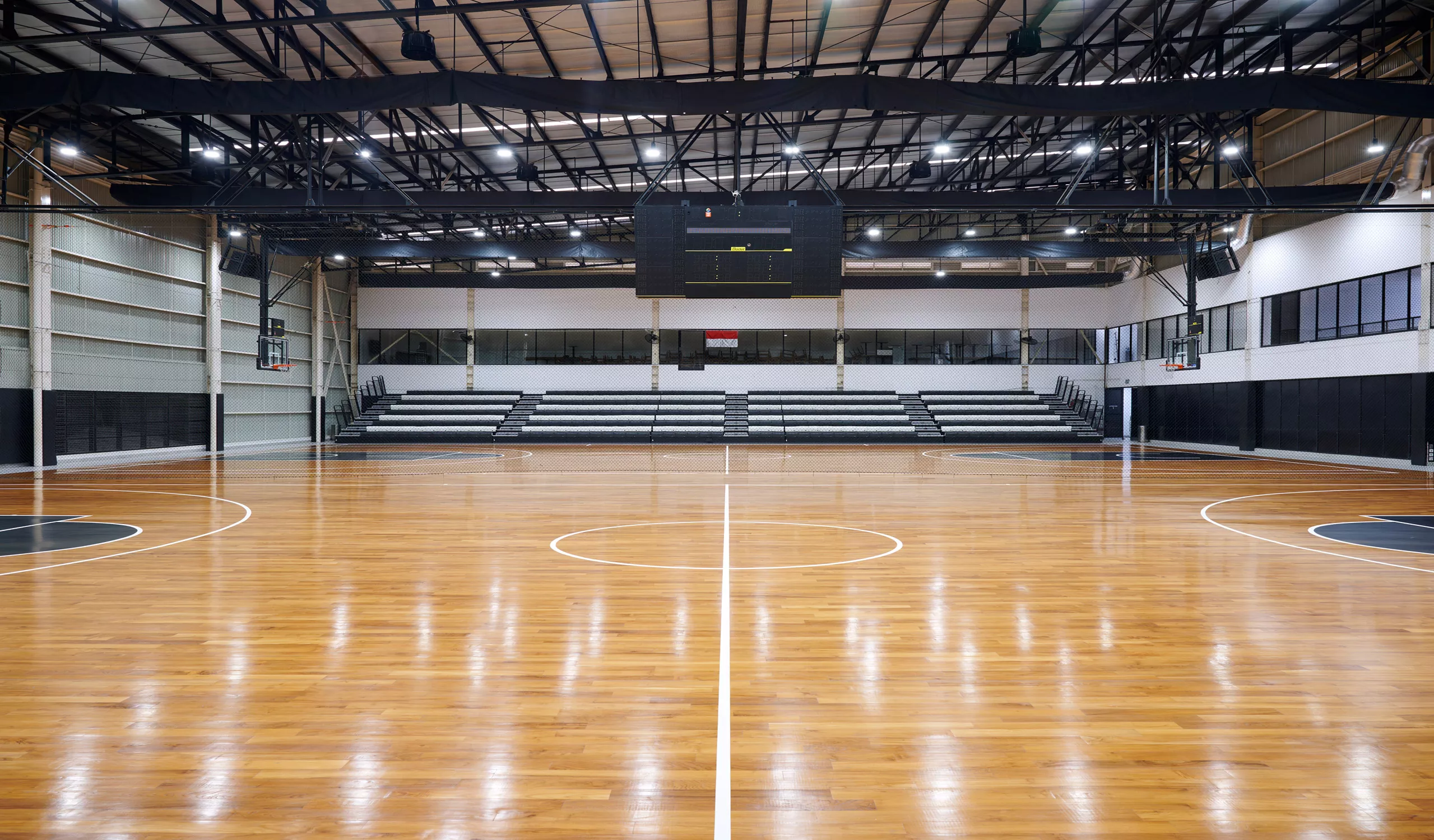 The stadium delivers a functional yet uplifting space—one that supports community gatherings, and the energetic culture surrounding basketball in Indonesia’s expanding suburban landscape.
