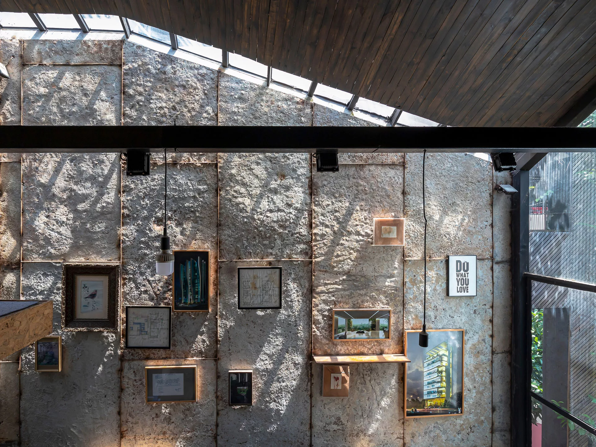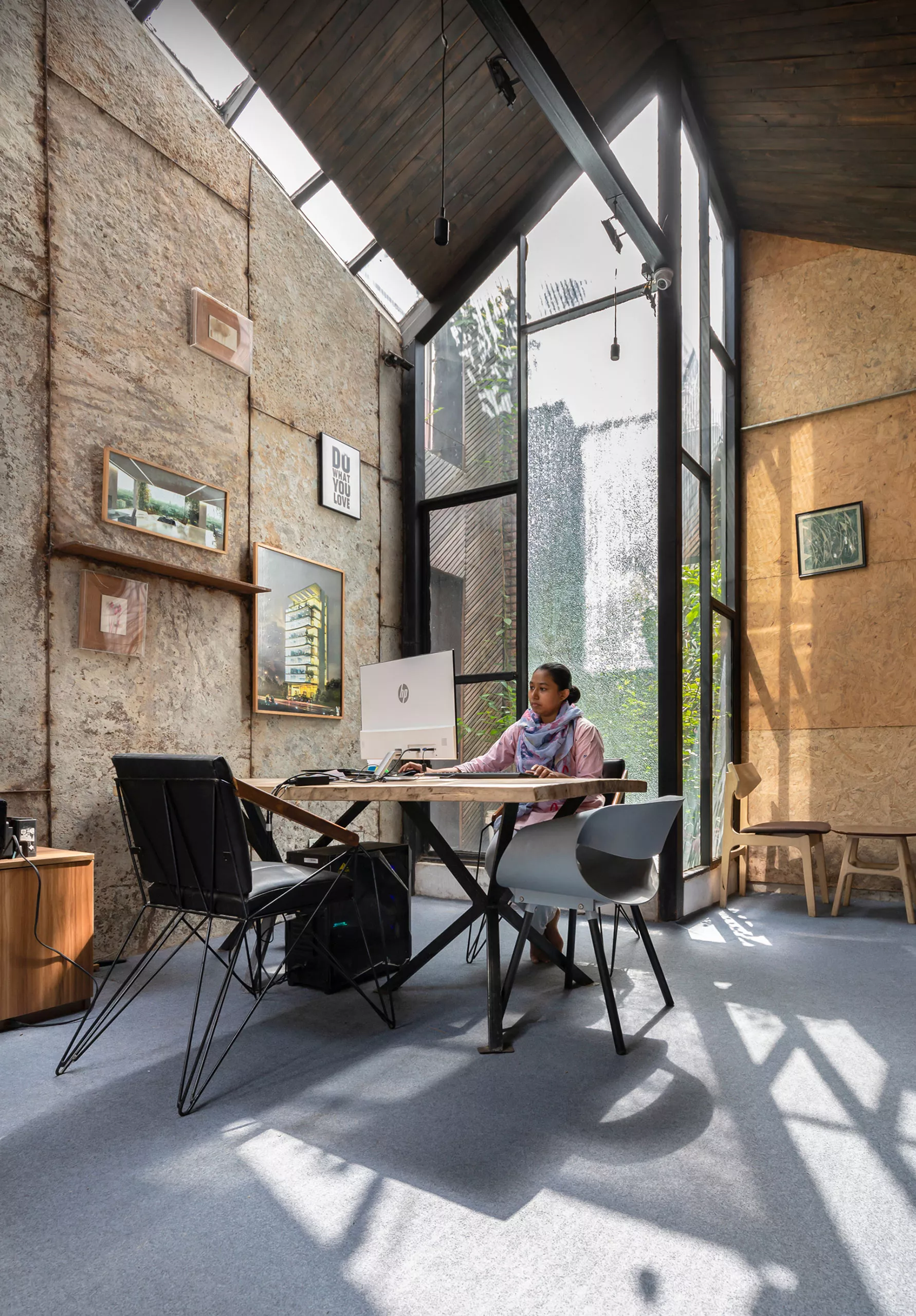 Set atop a busy Dhaka rooftop, this architecture studio reimagines the city’s underutilized vertical plane as a place for creativity, sustainability, and spatial innovation. Conceived in response to the dense and constrained ground-level fabric, the project leverages elevation as opportunity—crafting a workspace where nature, climate, and architectural expression converge.