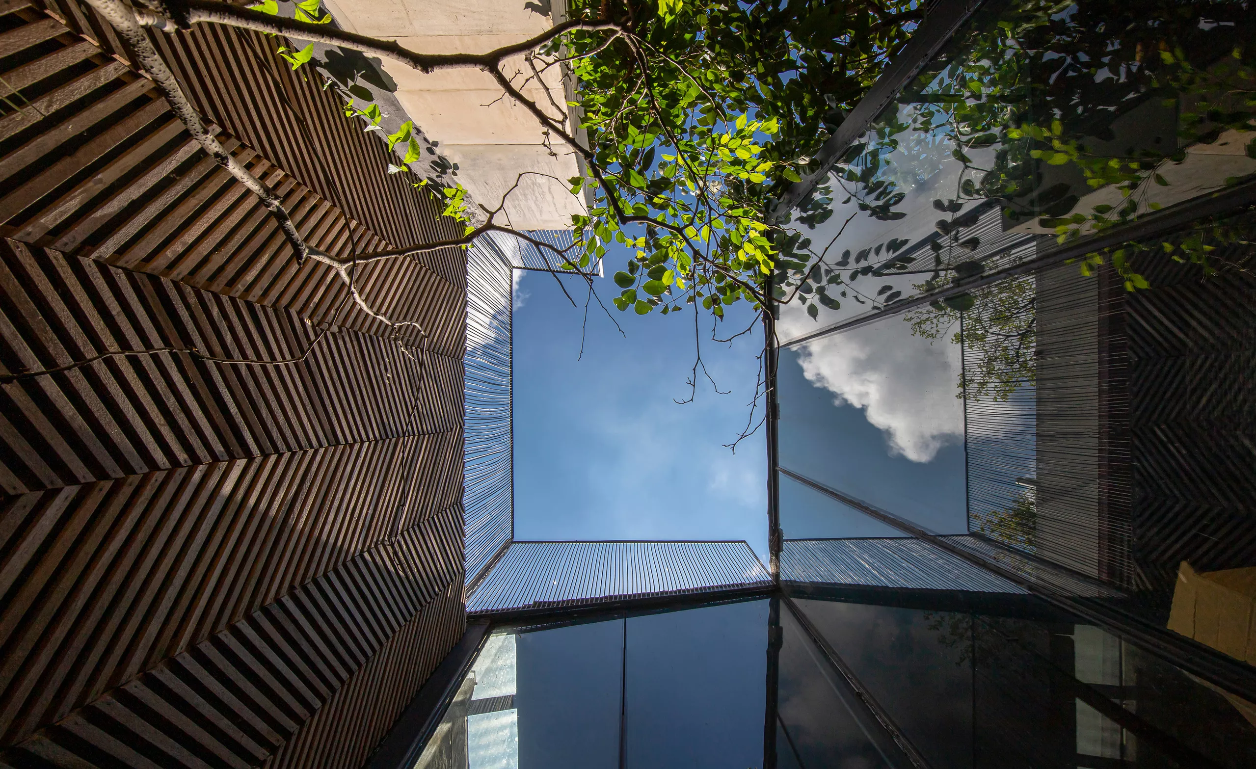 The rooftop setting presents an inherently warmer microclimate, yet the design embraces this constraint as a driver of environmental strategy. Rather than relying on deep shading, the studio introduces a series of controlled open-sky voids. These apertures promote cross ventilation, inviting the southern breeze to flush warm air through the space while heat vents naturally to the north. The result is a workspace that remains passively cool, porous, and deeply connected to its environment.