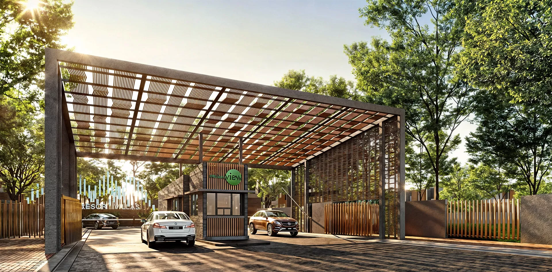 A 1.5 km jogging path meanders through the villas, linking neighborhoods with scenic back lanes and pocket parks, enhancing connectivity and fostering a sense of community. At the main entrance, a signature signage feature marks a memorable gateway into the development.