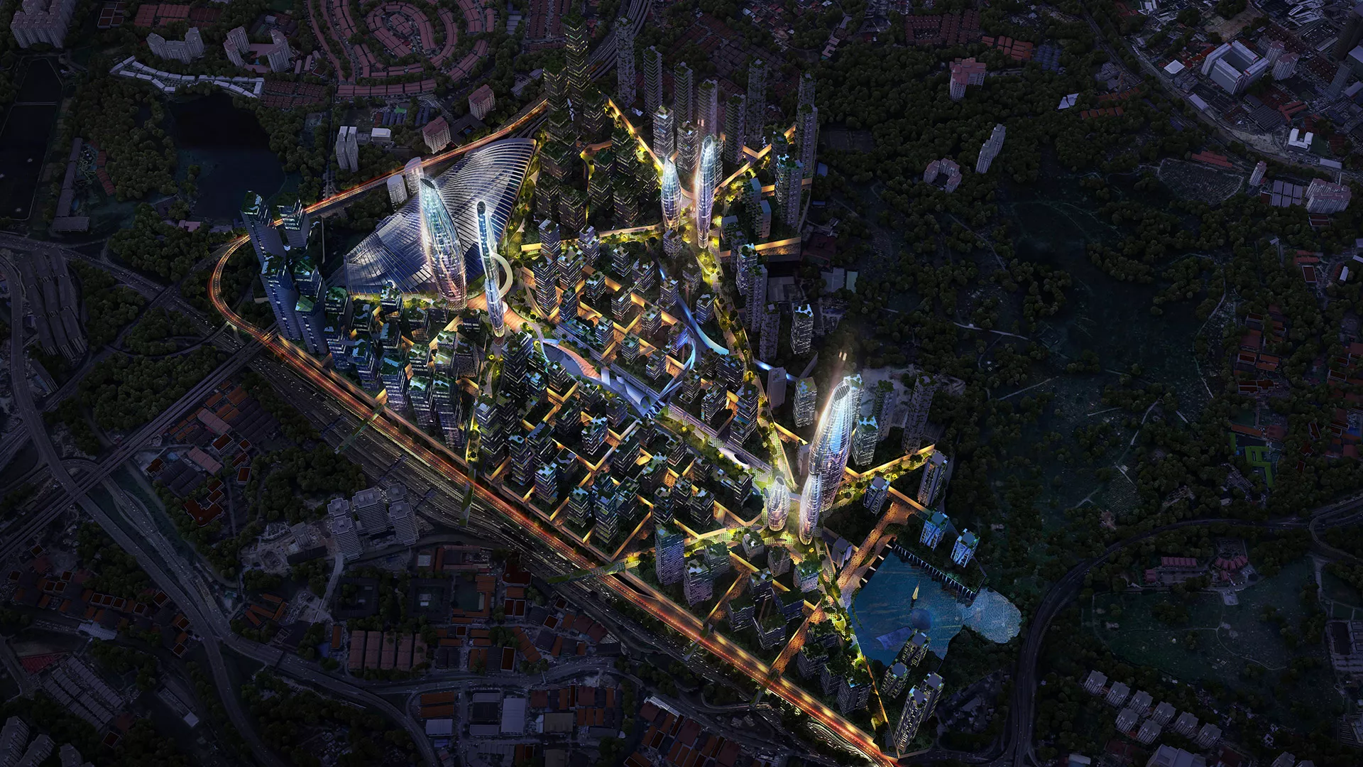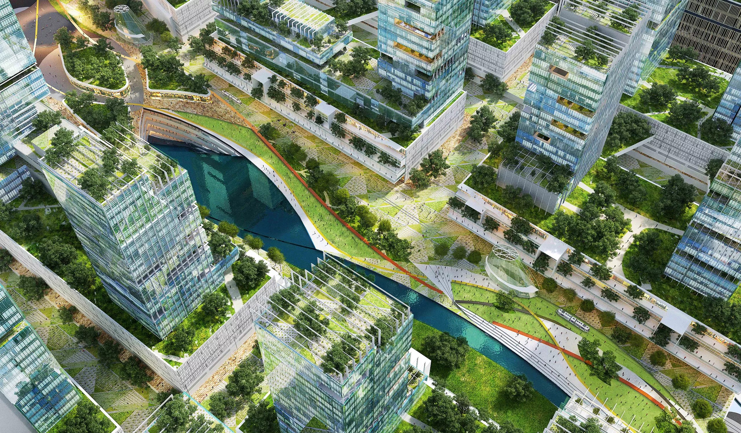 Spanning over 480 acres, its strategic position at the intersection of major transportation links, including high-speed rail and MRT stations, commands excellent accessibility for its users. The project features three distinctive activity centers, each with its unique identity — an International Business and Commerce Hub, an Education & Creativity zone, and a Wellness & Culture district. These “stars” are connected by vibrant public spaces, lively corridors and green infrastructure. Underneath the pedestrian-friendly surface, an underground network of utilities, parking, retail and