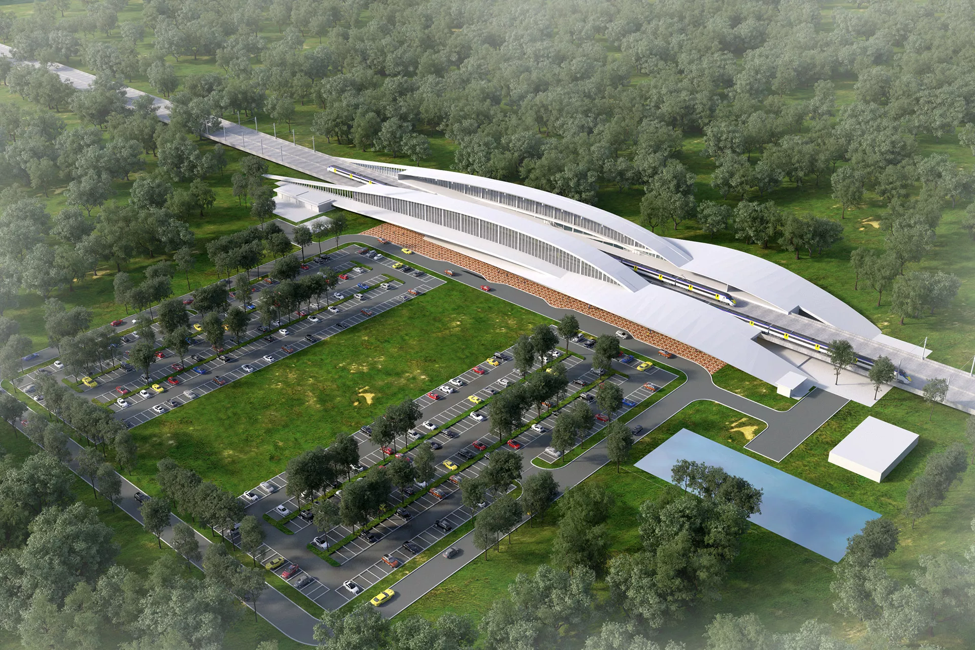Station design prioritizes clarity, efficiency, and contextual responsiveness. Modular planning principles create a consistent framework across the network, yet allow adaptation to local topography, urban scale, and cultural character. Structural elements, naturally lit concourses, and shaded platforms are integrated with durable material systems suited to Malaysia’s tropical climate, reinforcing both resilience and passenger comfort. Beyond the stations themselves, the ECRL network incorporates tunnels, bridges, and integrated signaling infrastructure to form a cohesive and sustainable transport system that supports long-term economic growth and intercity mobility.