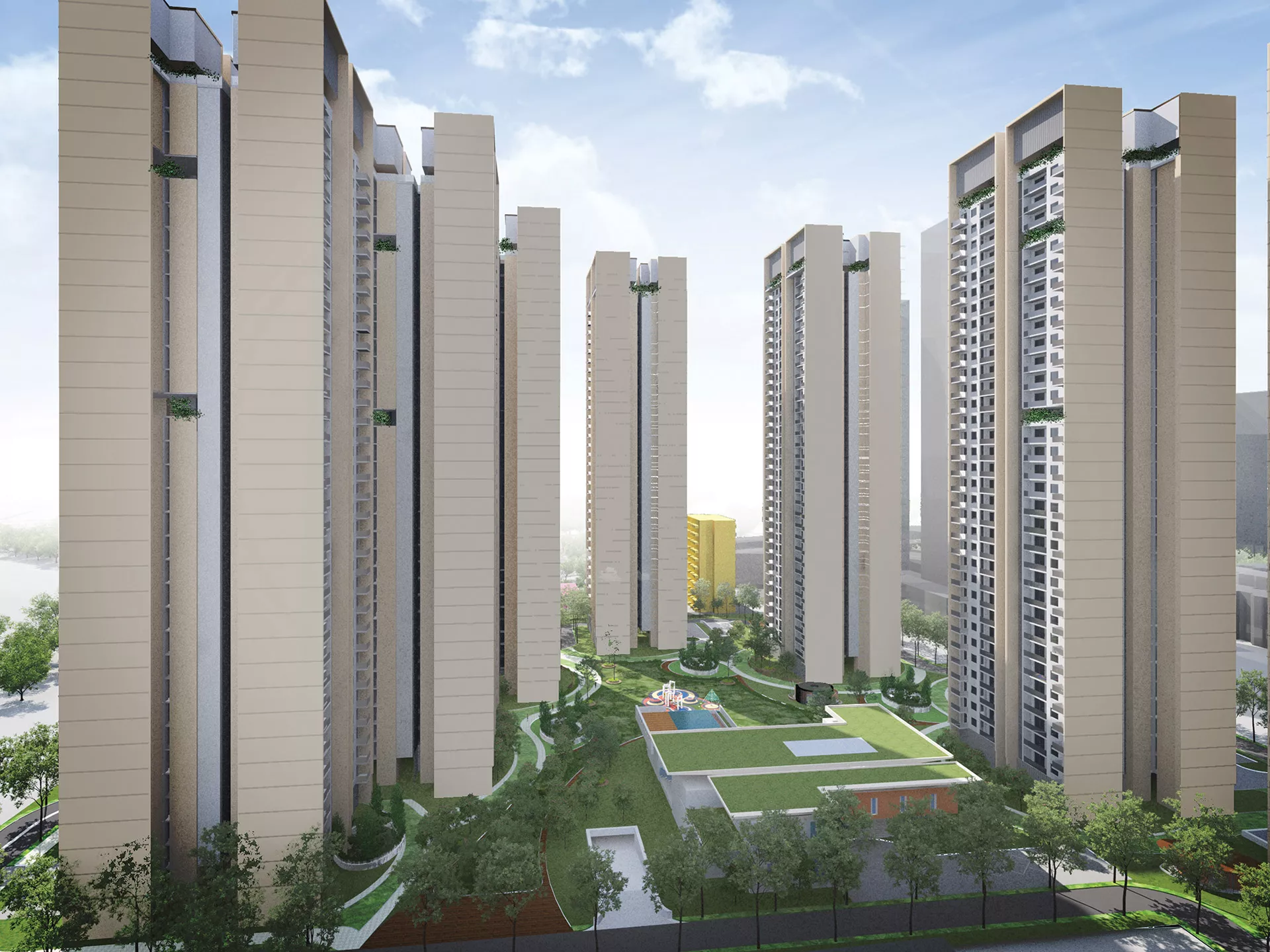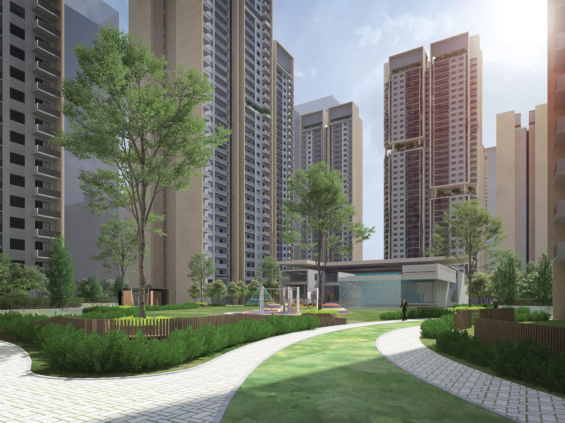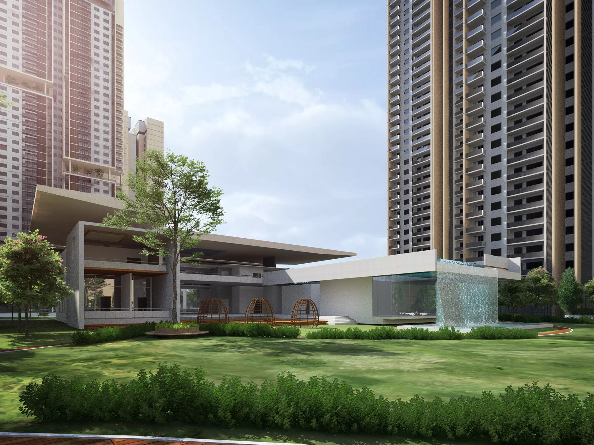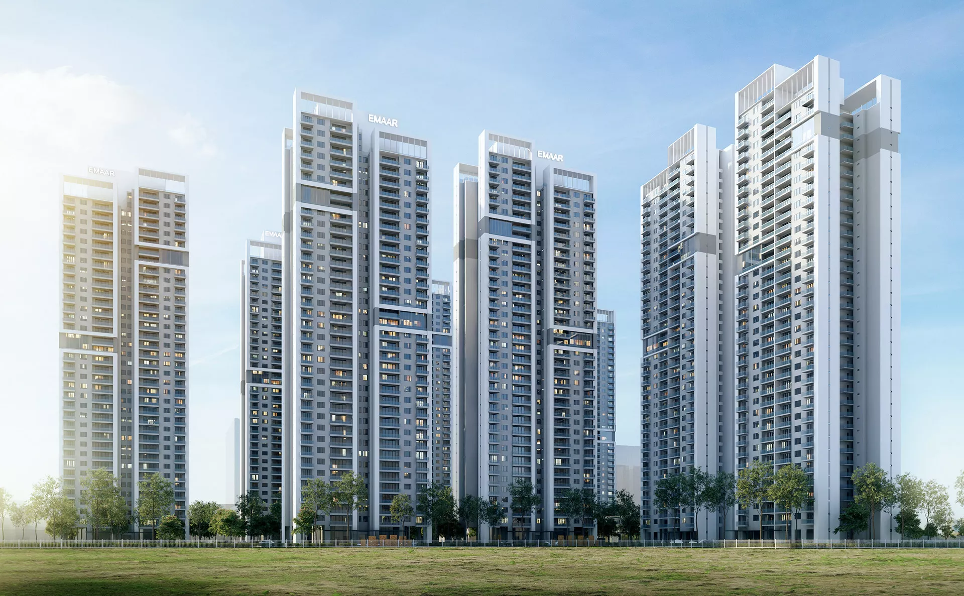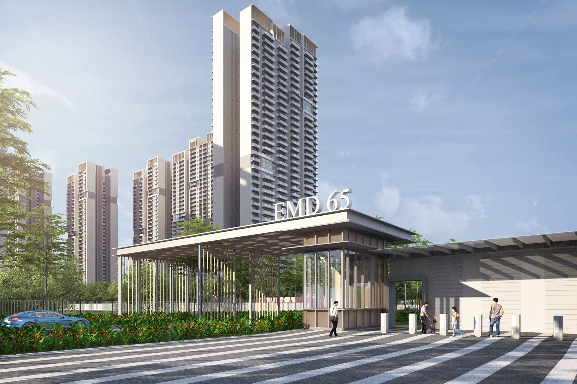 Gurugram is India’s second-largest IT hub and third-largest financial and banking hub, resulting in rising demands for premium housing in the region. The development of EMD-65 responds to this demand with 1,500 units distributed across 10 towers averaging 38 stories each, with a total gross floor area of 220,000 m². Its master plan envisions a secure, futuristic, and convenient residential enclave with the wellness concept supporting the entire development.