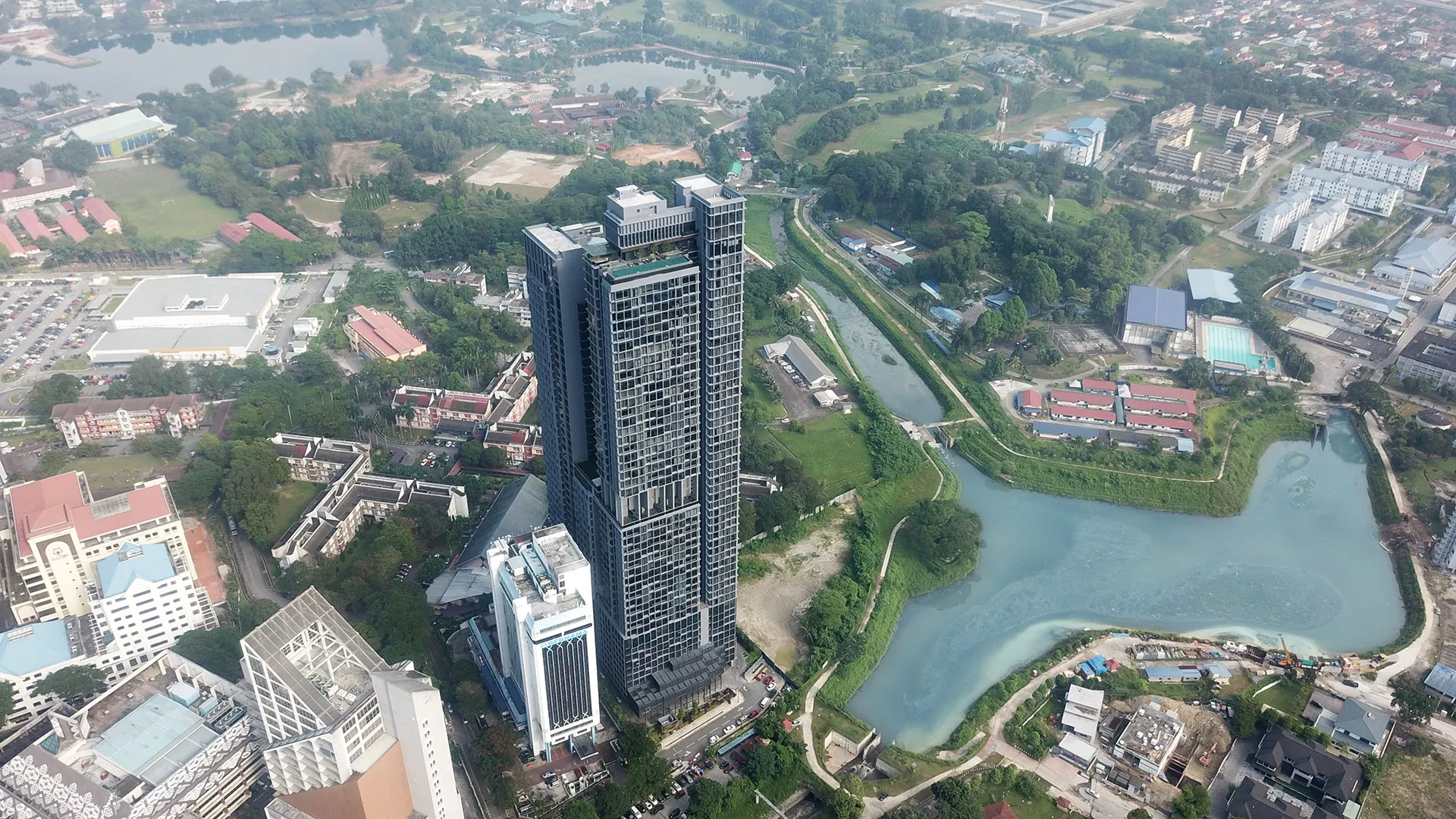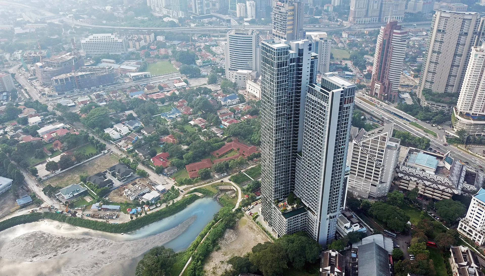 Expressionz comprises two towers of 53 and 45 storeys, conceived as a bold urban landmark bridging Kuala Lumpur’s city center and the green expanse of Tasik Titiwangsa. Designed as “Professional Suites,” the development combines residential, work, and leisure environments, reflecting a contemporary lifestyle where family, business, and recreation coexist.