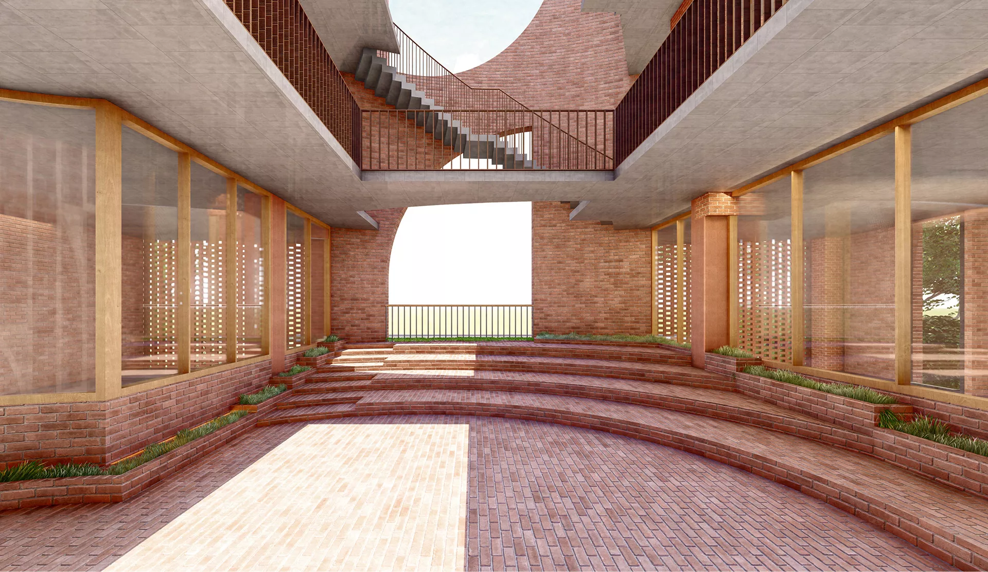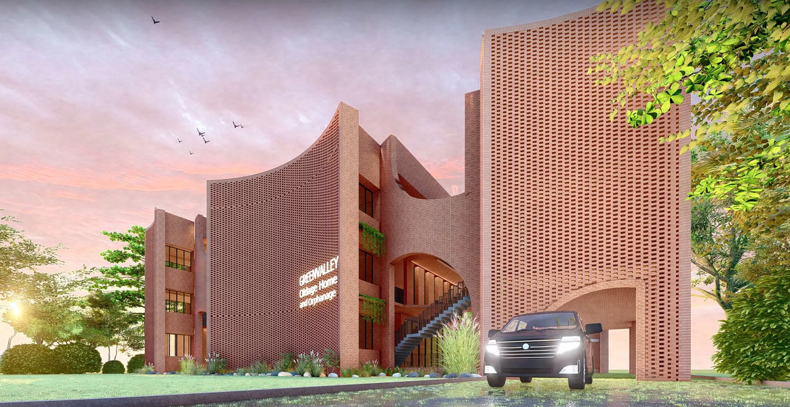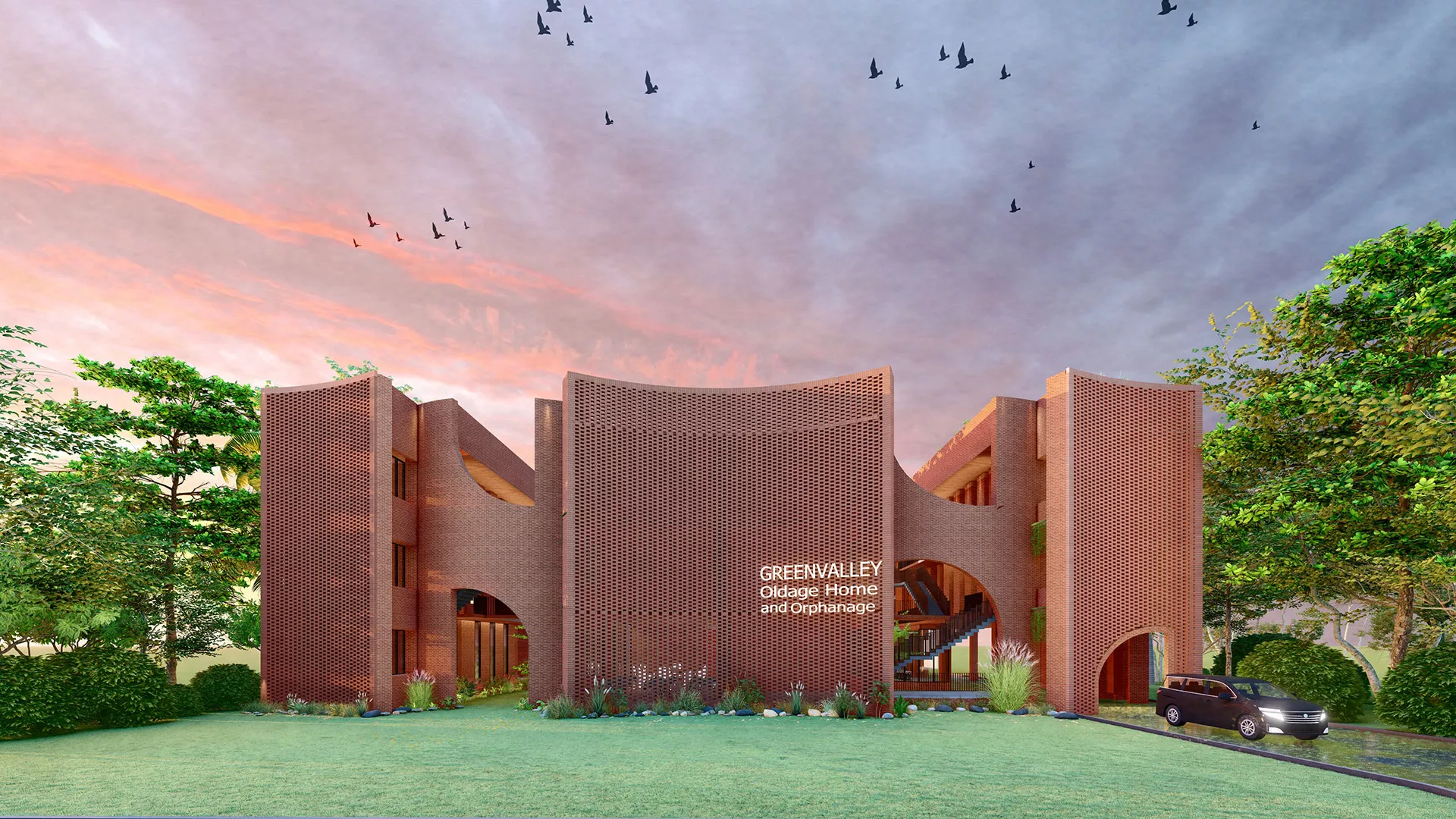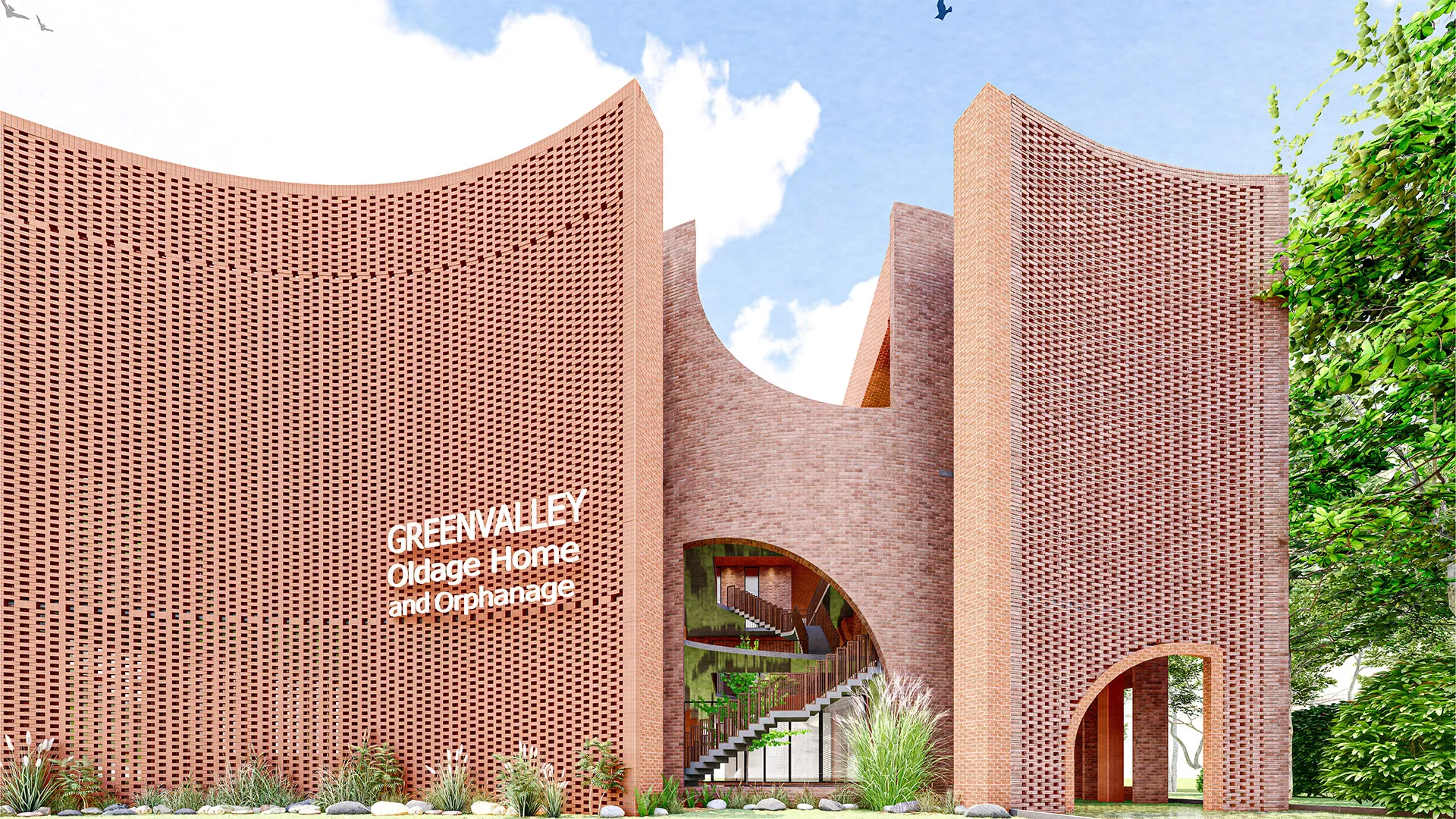 The natural forces of water and air flowing from the Himalayas through Bangladesh play a significant role in architectural design, particularly in maximizing ventilation and creating a healthy environment. The design of the old age home building has been oriented along the north-south axis to ensure maximum cross-ventilation. Perforated mesh bricks additionally help facilitate natural airflow throughout the structure. The design, characterized by curved perforated brick walls, symbolizes openness, warmth, and a seamless connection between past and future generations. The permeable walls allow natural light and airflow, creating a tranquil and breathable living environment.