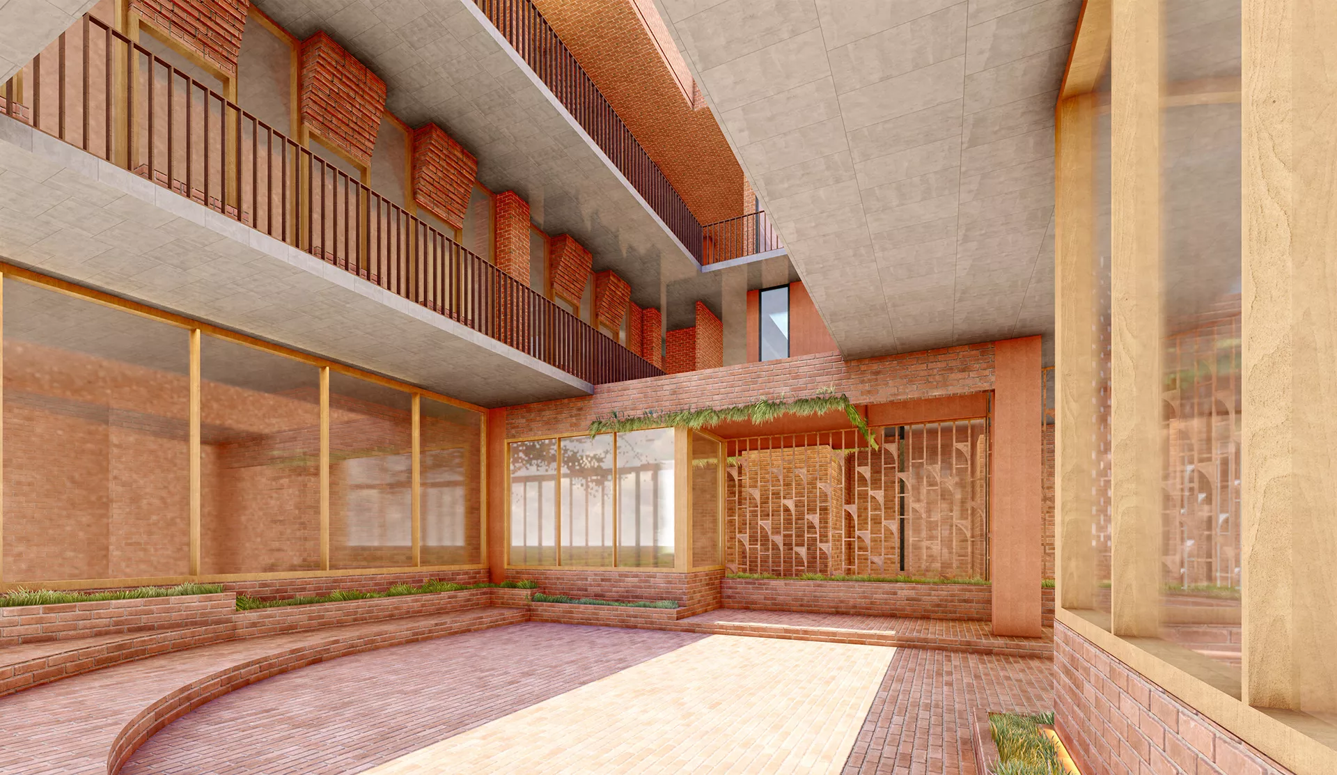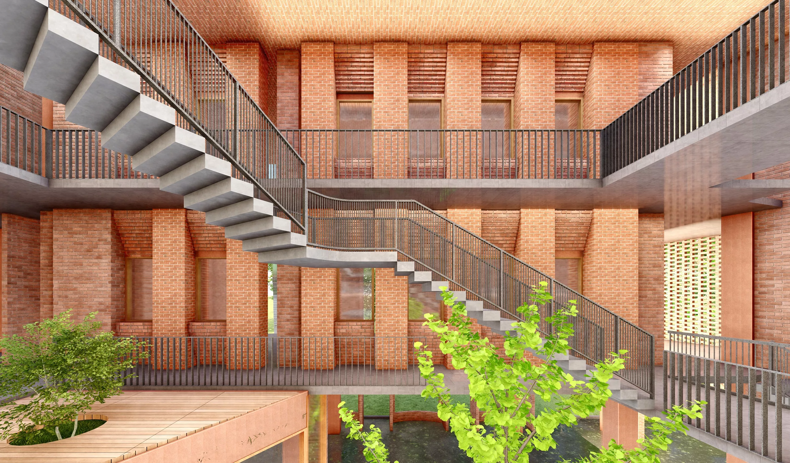 This project is based on the courtyard concept, inspired by traditional village homes in Bangladesh, where the structure is designed around a central courtyard, considering various factors such as social integration, climate, and daily life activities. These courtyards serve as multifunctional spaces for residents to carry out daily tasks, host events, and foster community interaction. This traditional courtyard concept turns modern with two vertical courtyards at the core in this old age home, emphasizing social interaction and climate responsiveness. And so, all the programs and functions of the project have been developed around the central courtyards.