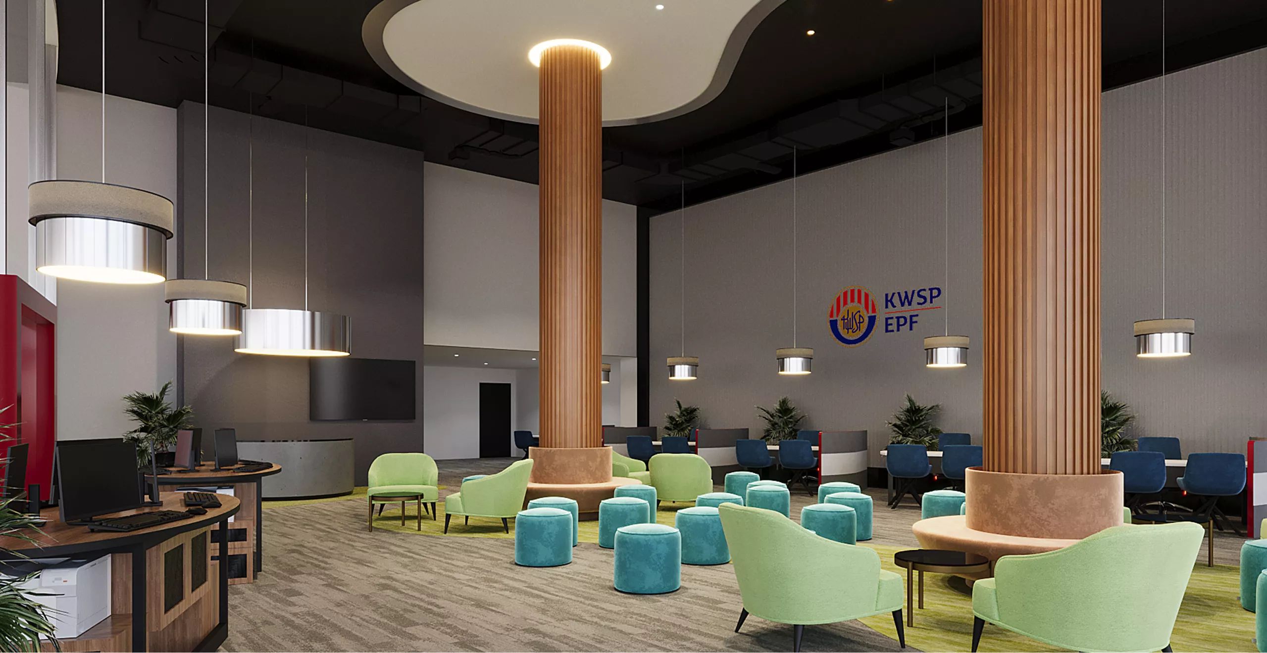 Innovation, culture, and community guide the design approach behind the new KWSP Georgetown office. Spanning four thoughtfully designed floors, the space emphasizes intuitive user experience, with accessible service counters, flexible consultation and meeting rooms, collaborative work areas, and informal breakout zones. This project forms part of a nationwide strategic initiative to modernize service centers and workspace environments across organizations.