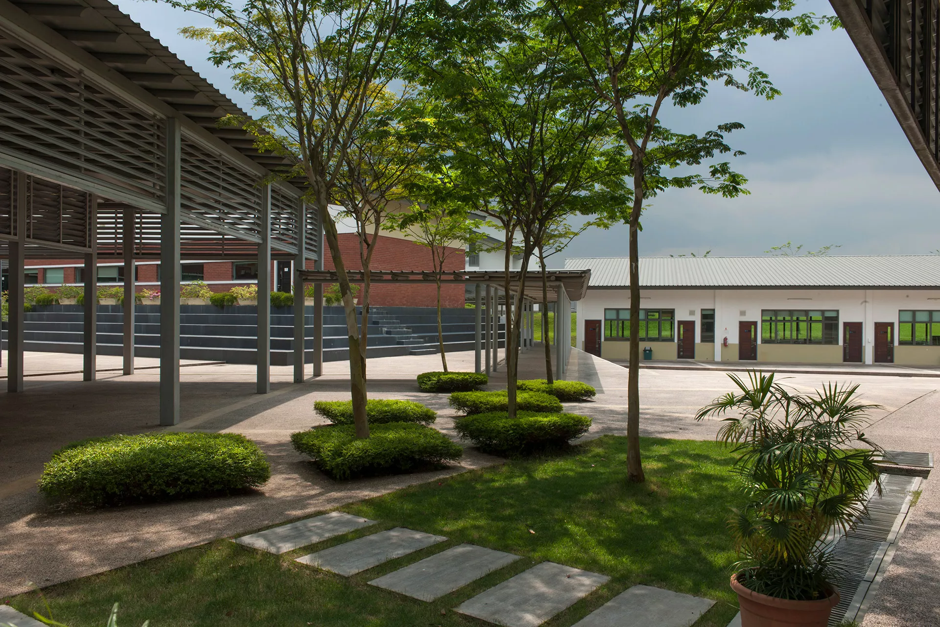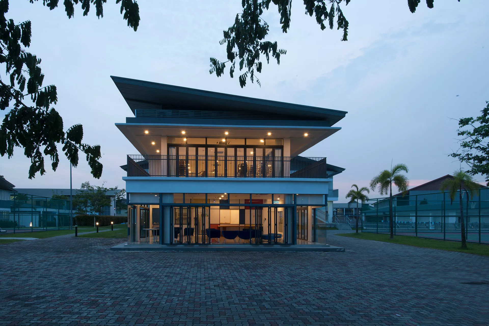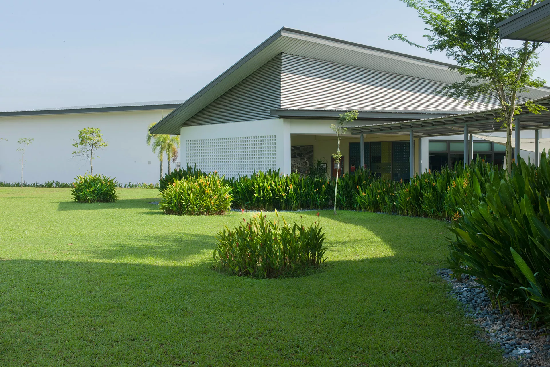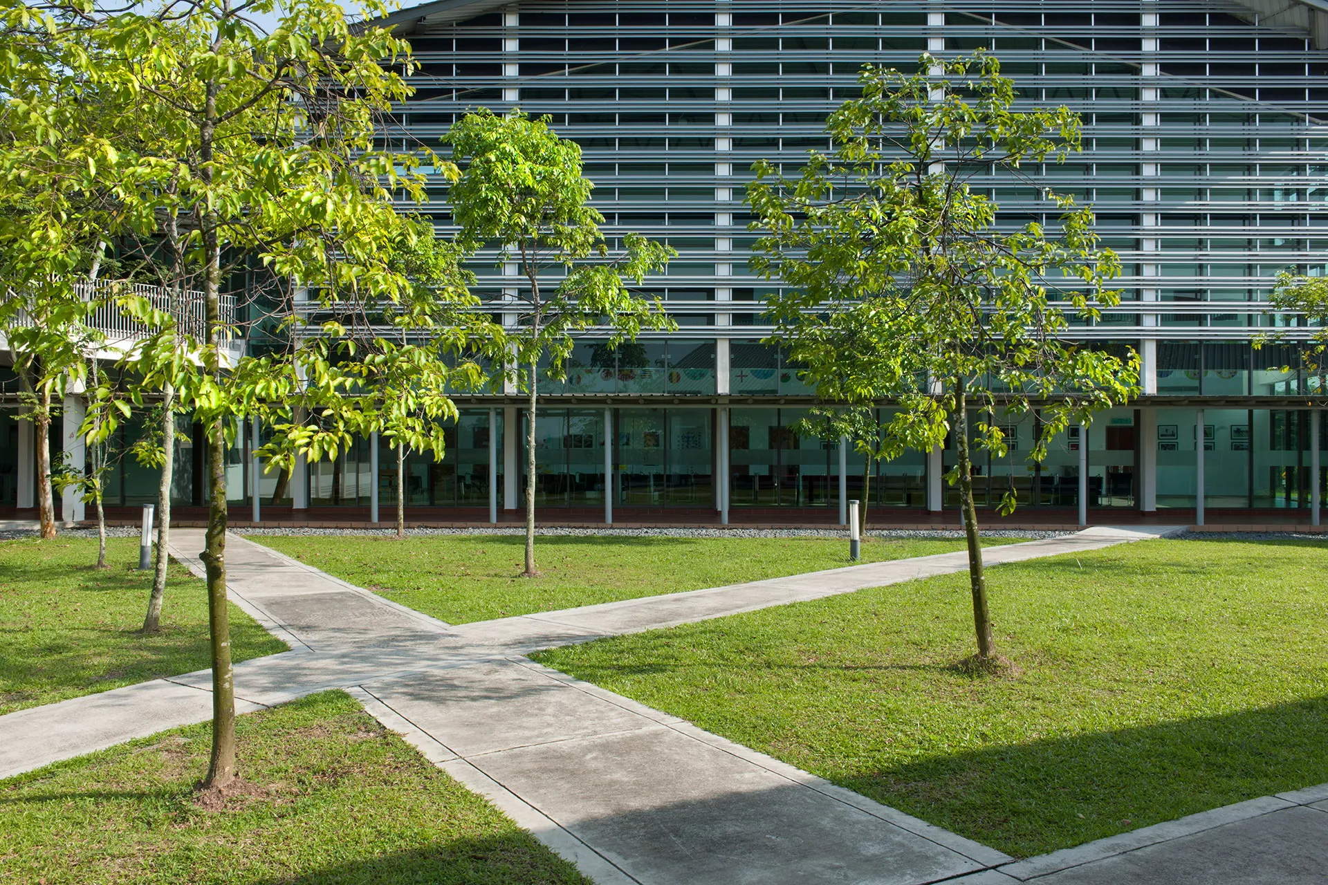The Sixth Form Centre is a two-storey open-plan academic and recreational hub, with the design adopting a contemporary interpretation of colonial and tropical principles. These principles respond to the geographical and climatic context of Malaysia with shaded verandas, generous overhangs, and naturally ventilated spaces that maximize daylight while mediating heat gain.