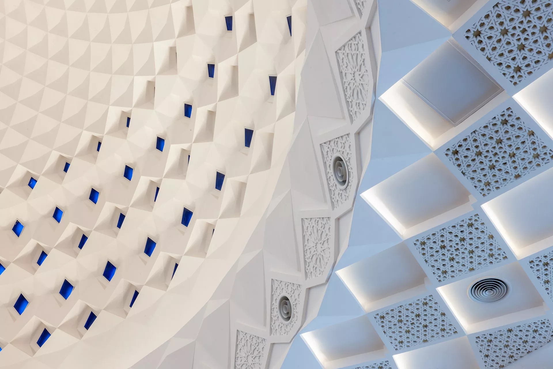 The design is rooted in three core Islamic principles—moderation, inclusivity, and respect—interpreted with a modern twist.  Carefully curated colors, textures, geometric patterns and materials strike a deliberate balance between cultural tradition and modern sensibility.