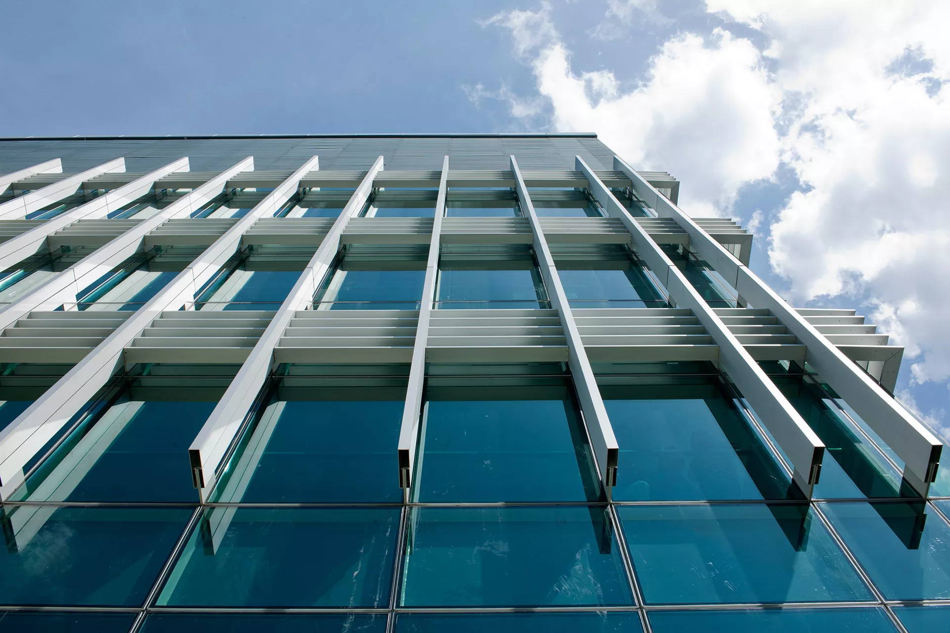 Energy efficiency is embedded through deep vertical fins for sun-shading, low-e double glazing, and the integration of passive design strategies. The building has achieved dual green certifications: Malaysia’s Green Building Index (GBI) and Singapore’s BCA Green Mark Gold.