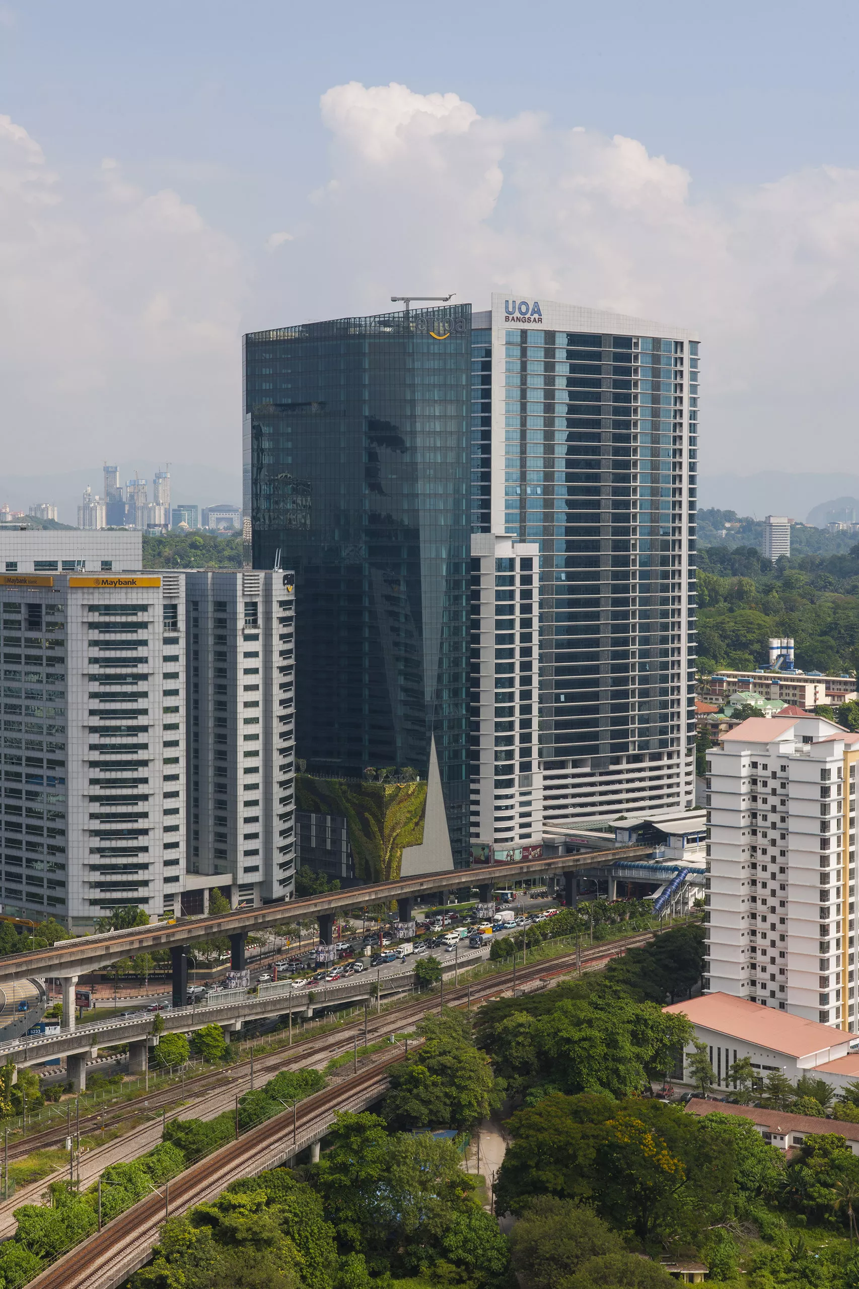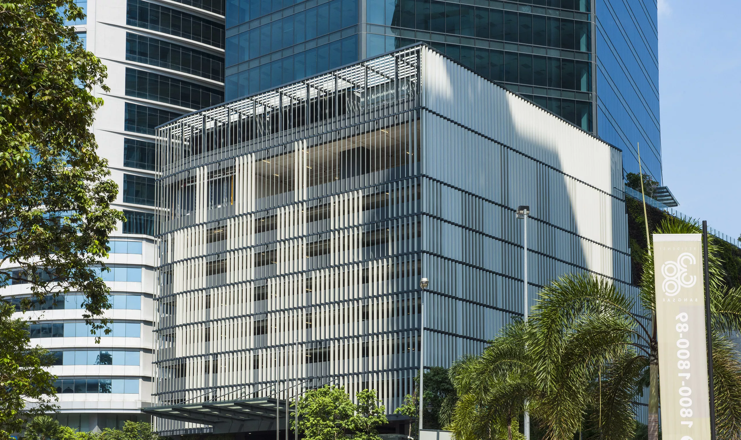 The building features a large green wall on the parking podium and a green-rated crystal grey curtain wall that extends to the ground, ensuring visual continuity. The tower meets Grade A office building standards and holds both GBI Gold and GreenRE Platinum ratings. By utilizing sustainable materials and environmentally responsible design practices, the development promotes energy and water efficiency, as well as the monitoring of energy and water use. Additionally, the building maintains indoor thermal comfort and high indoor air quality for the well-being of its occupants.