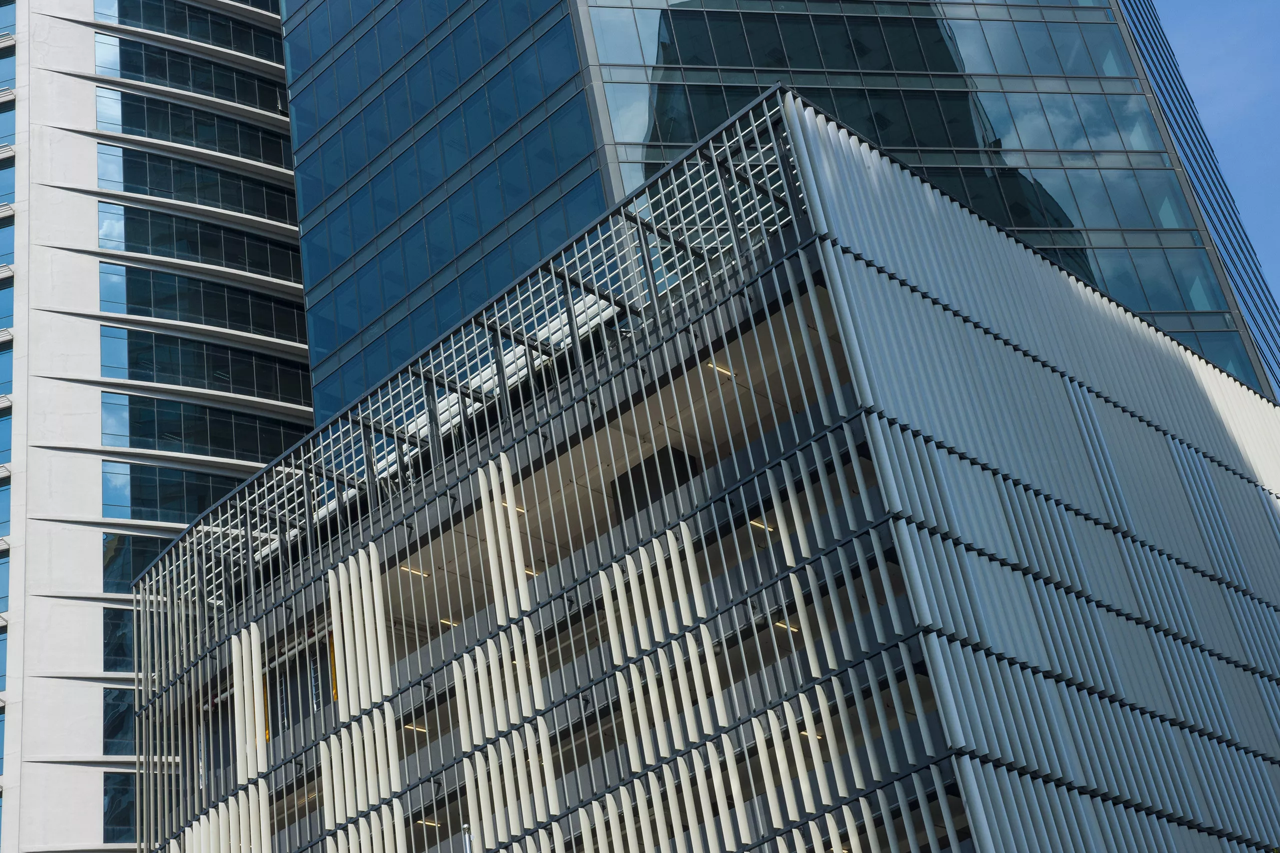 More than just a Grade A office building, Menara Etiqa exemplifies environmental leadership. It proudly achieves both GBI Gold and GreenRE Platinum certifications — a result of sustainable practices embedded into every facet of its design. A vertical green wall enlivens the street-facing corner of the parking podium, while the building’s sleek crystal-grey curtain wall and shimmering PVDF-coated aerofoil louvers optimize solar performance and visual continuity.