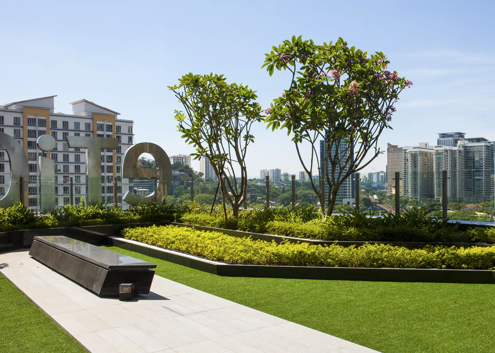 The terrace-level recreational podium introduces a lifestyle component where tenants can engage in activities such as yoga, informal meetings, and sky dining. The holistic landscape design, which includes a vertical garden system, creates a dynamic and multi-functional green workplace that supports both wellness and sustainability in the heart of Kuala Lumpur.