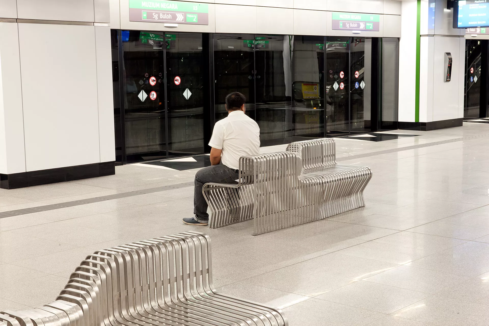 Inspired by the concept of Transition, Muzium Negara Station bridges heritage and modernity through its design language. Inspired by the National Museum’s role as a custodian of history, the station juxtaposes motifs drawn from traditional artifacts with contemporary materials and clean, modern lines. This interplay reflects the site’s unique context—where the nation’s archival past meets the surrounding network of progressive, future-driven infrastructure.