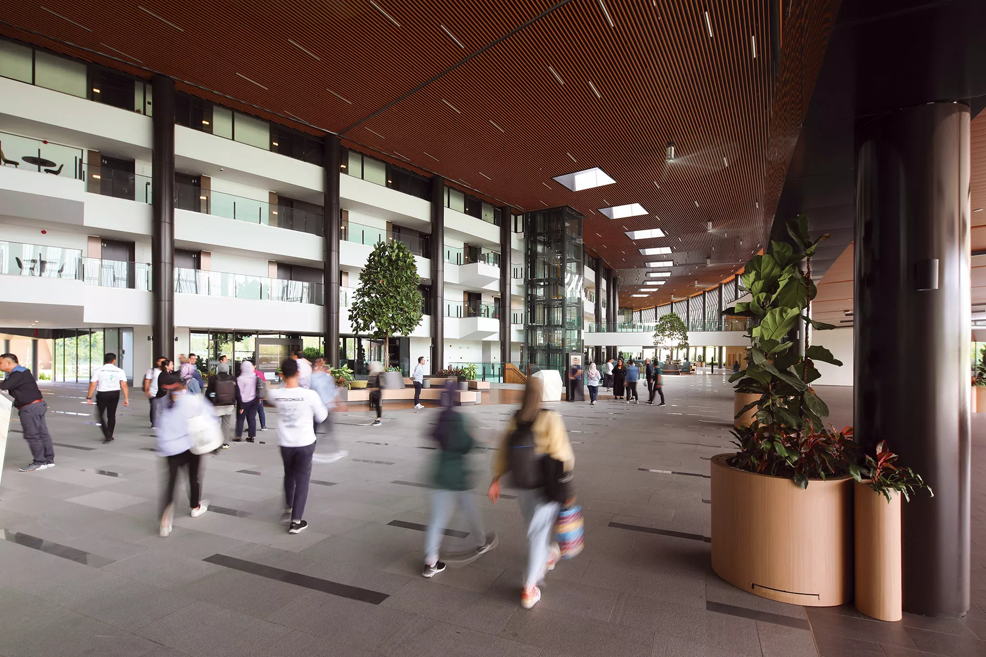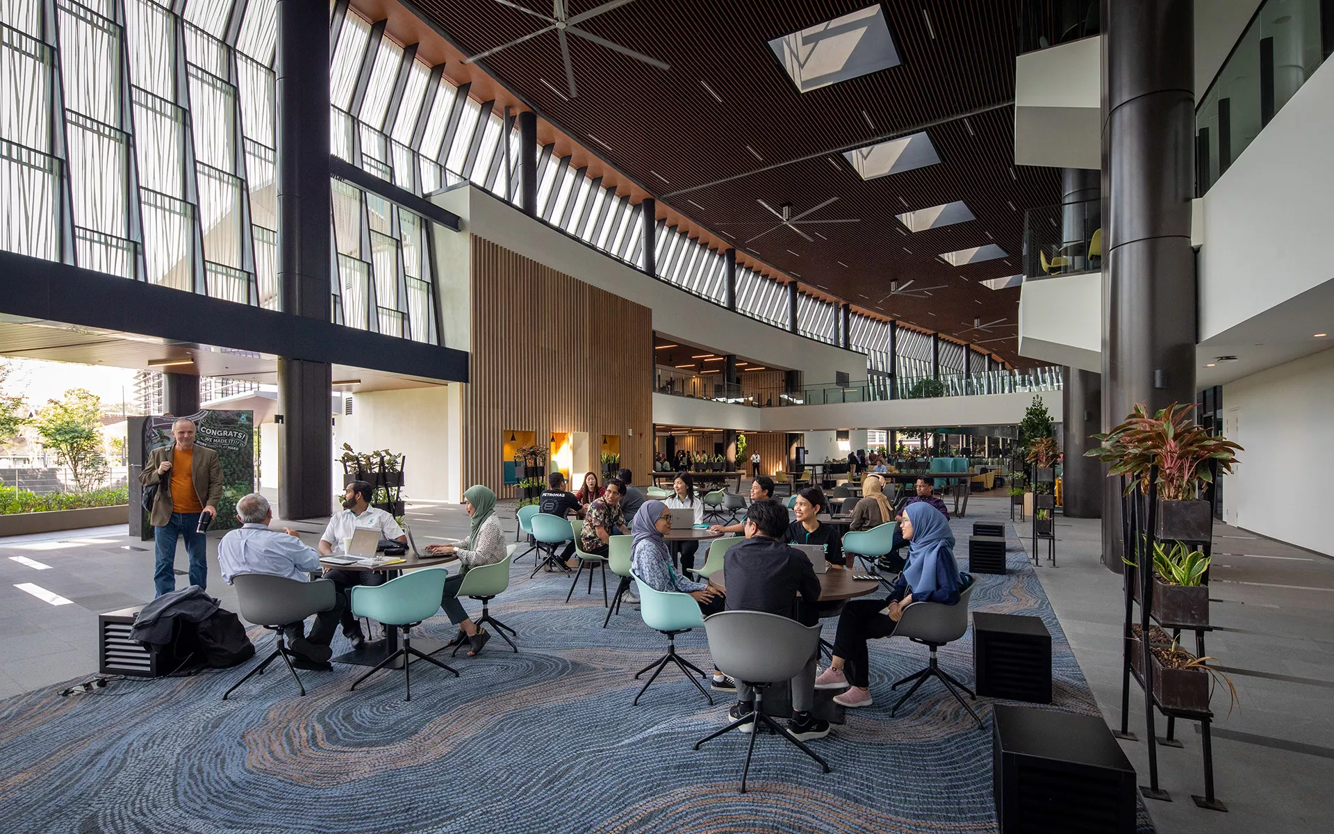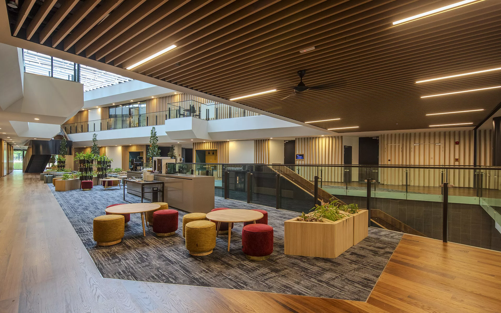 Enveloped by a sinuous four-storey green building, the interior has been thoughtfully designed to support PETRONAS’ commitment to innovation, sustainability and community. The foundation of PLC’s design approach lies in the organisational strategy of the entire building.
