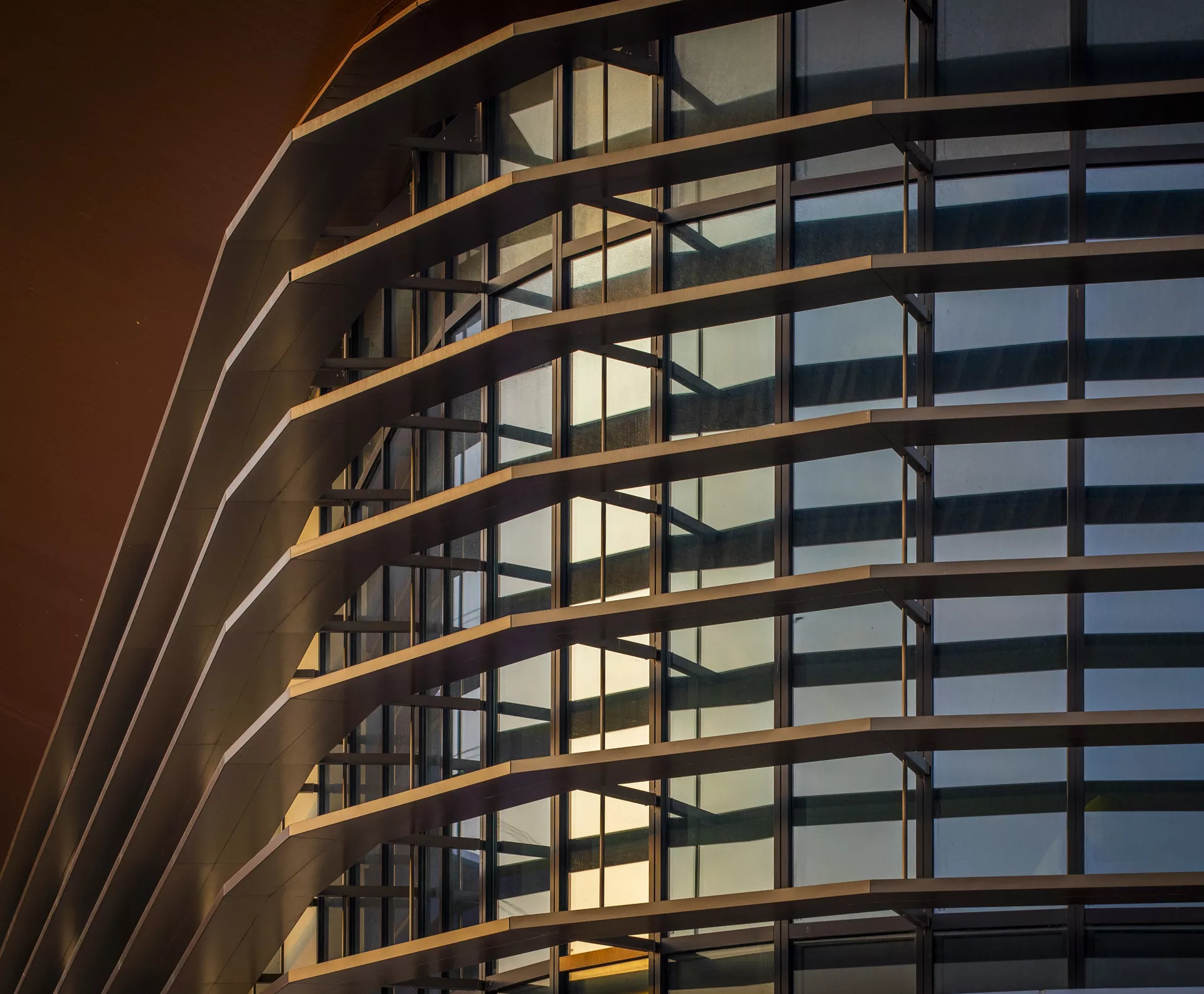 Defining the building’s curved form is the Spine, the principal artery and circulation route that links together all of PLC’s various components. Its triple-height volume connects spaces at ground level and via overhead pedestrian bridges, allowing seamless and unhindered passage from one area to the next.