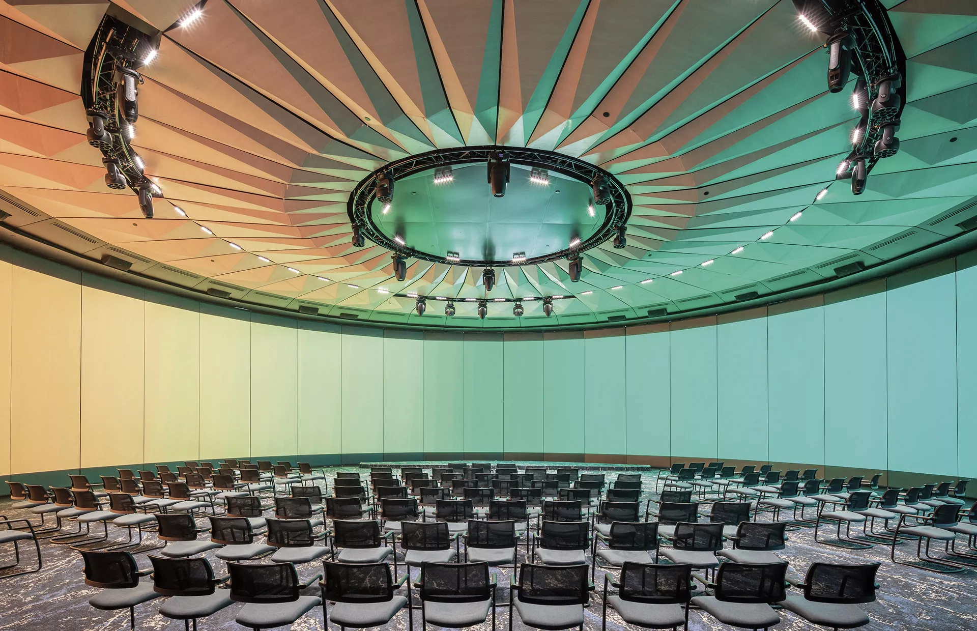 At the centre of the design lies the 360, a venue whose groundbreaking technology and versatility manifests PETRONAS’ progressive direction and PLC’s innovative spirit in one iconic form. The 360’s chameleonic attribute is made possible by its dynamic LED panel array, capable of creating digitally immersive environments and transforming the hall into a naturally illuminated gallery-type space through a 90-degree automated rotation of each panel.