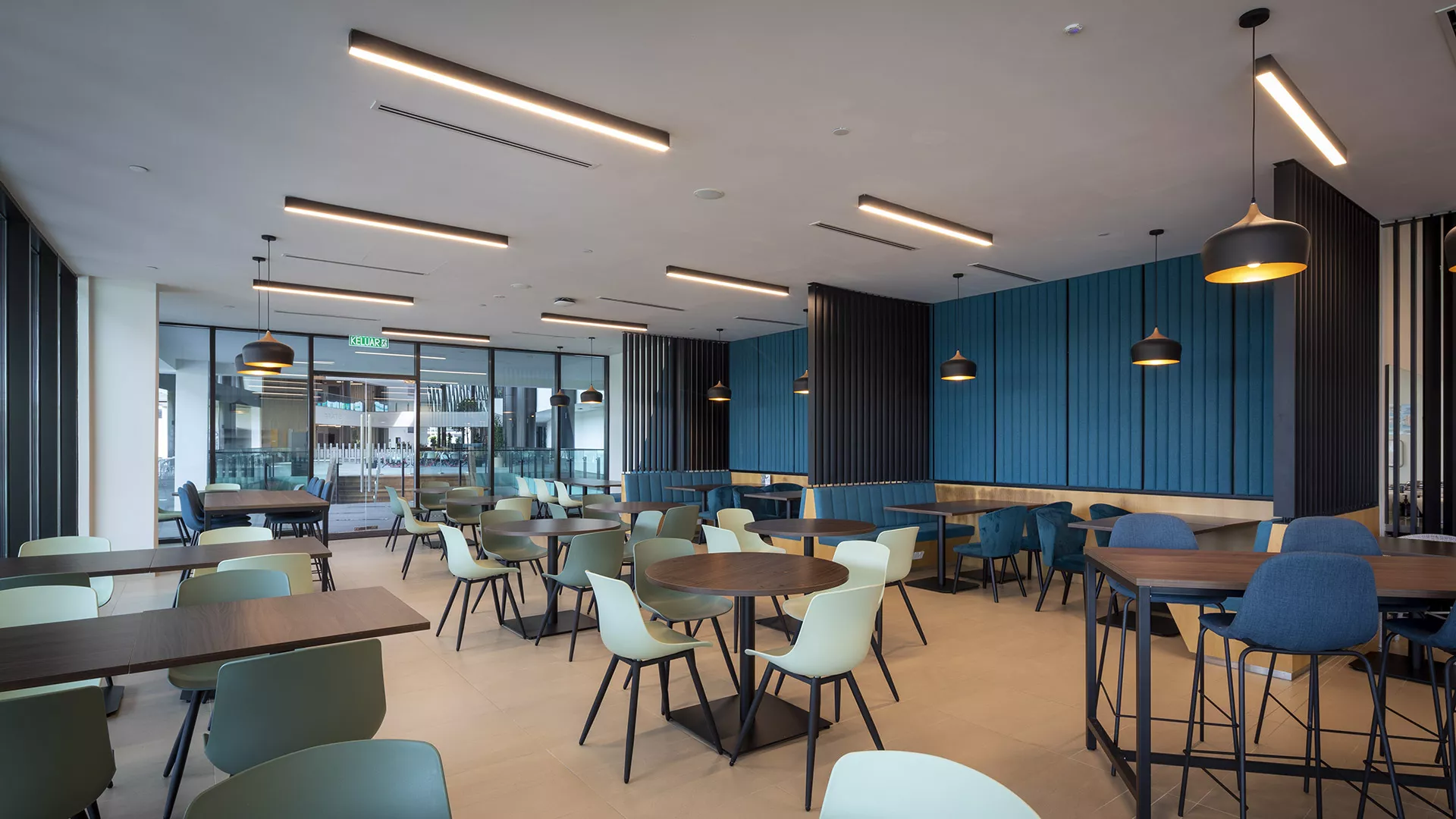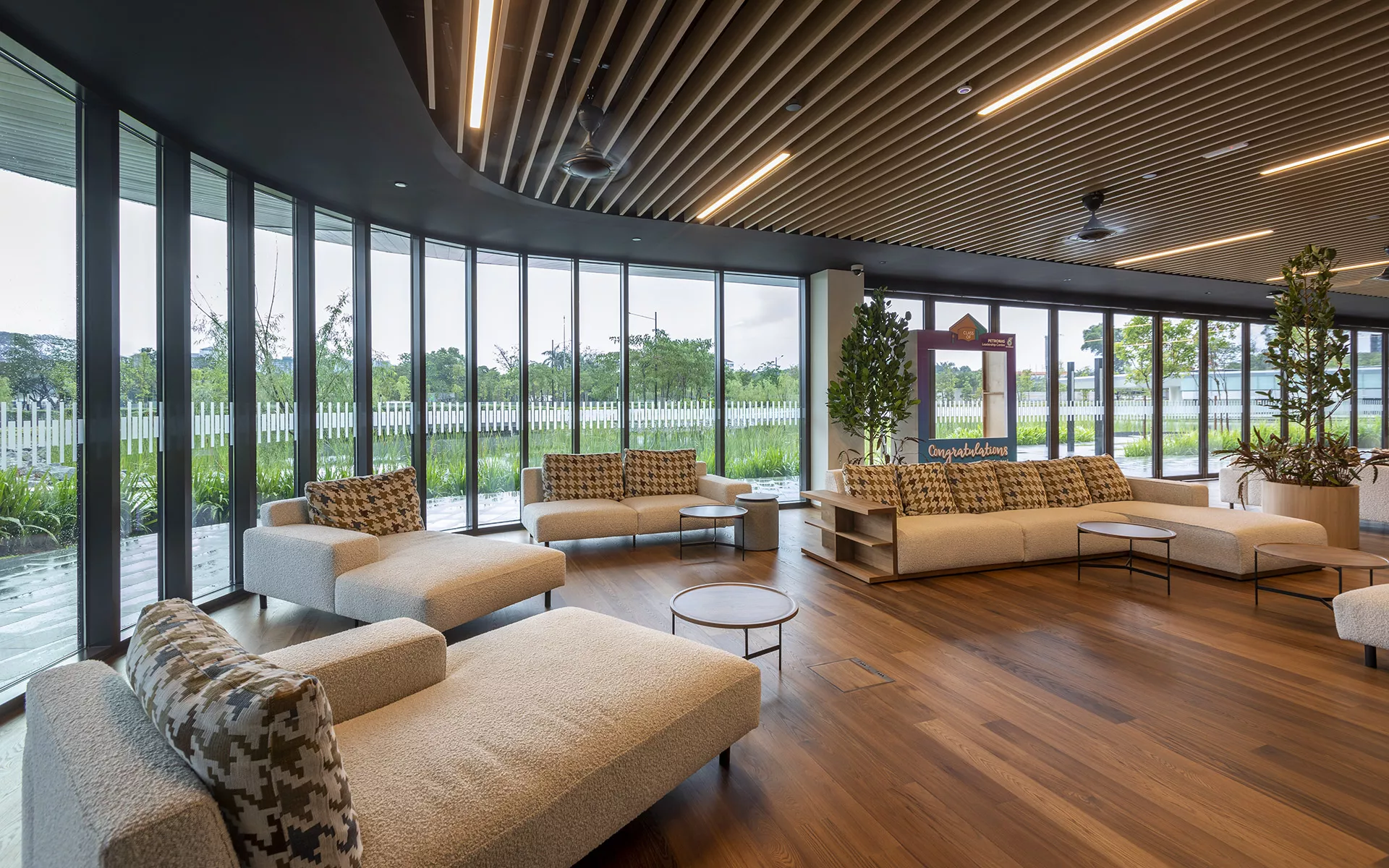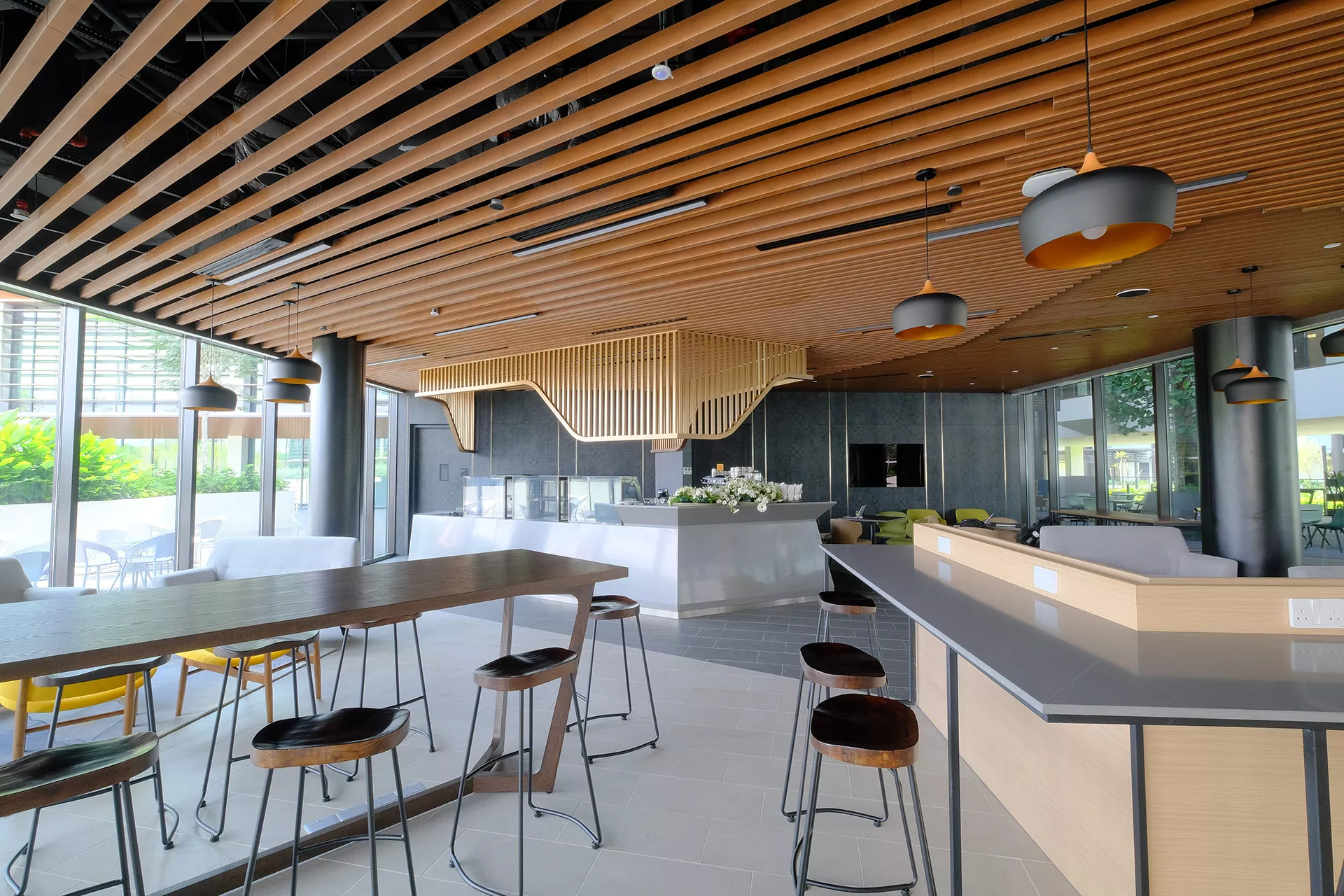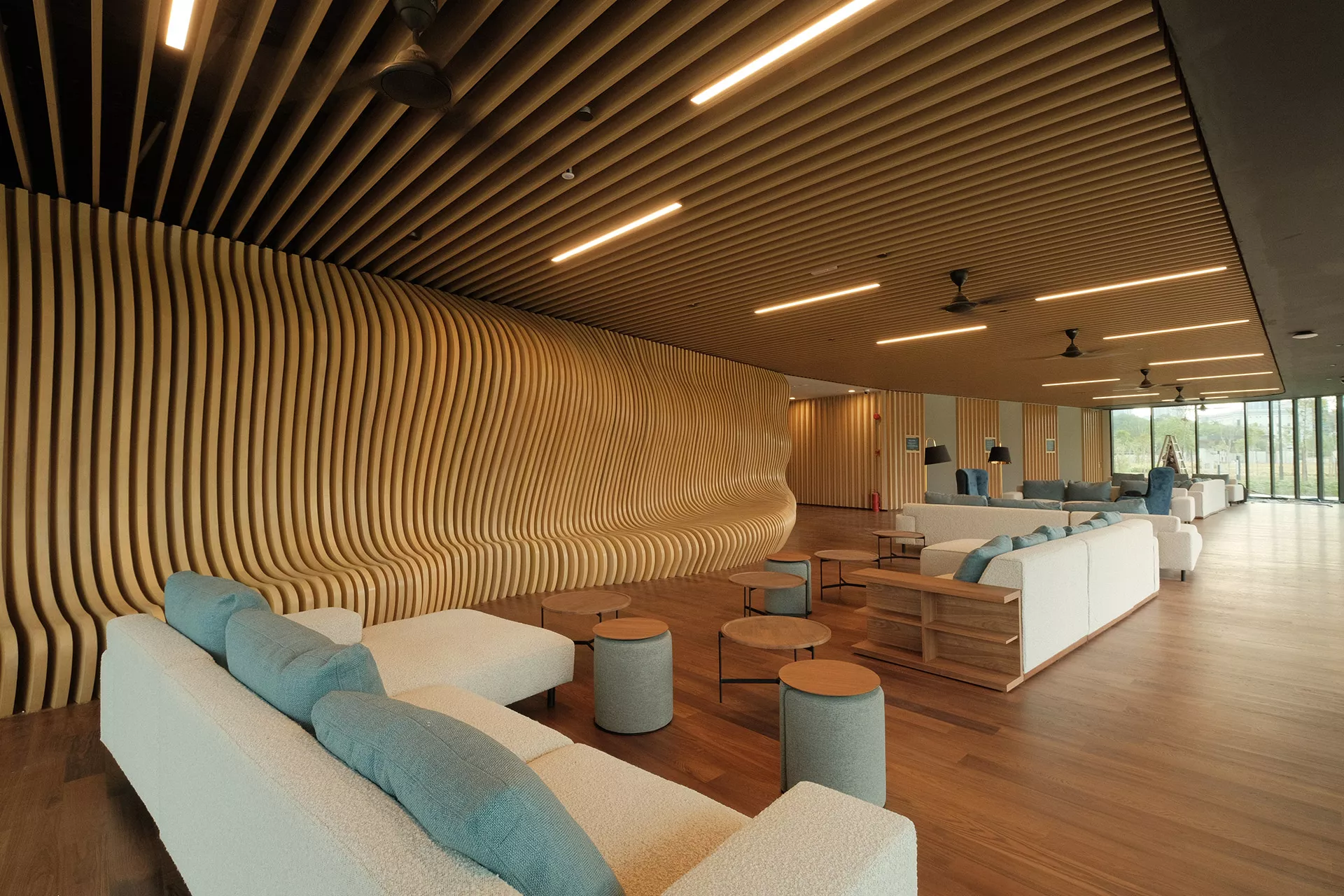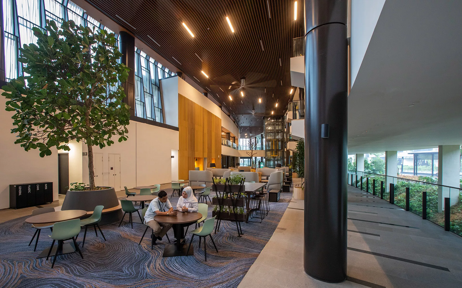 Overall, warm material palettes and thoughtful spatial zoning blur the boundaries between indoor areas and the surrounding landscape, to create a dynamic environment that encourages collaboration and community-building, reflecting PETRONAS’ progressive and people-centric work culture.