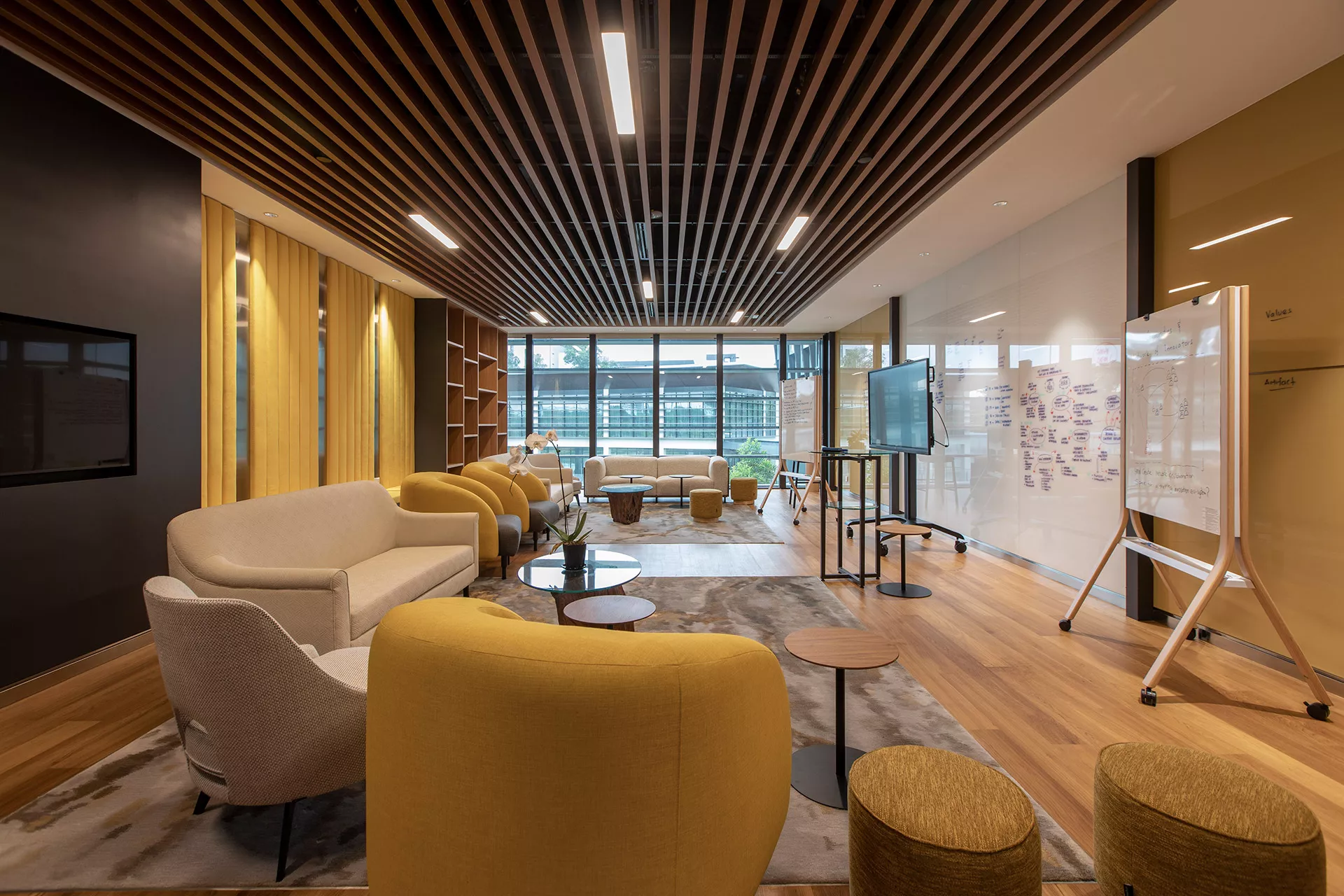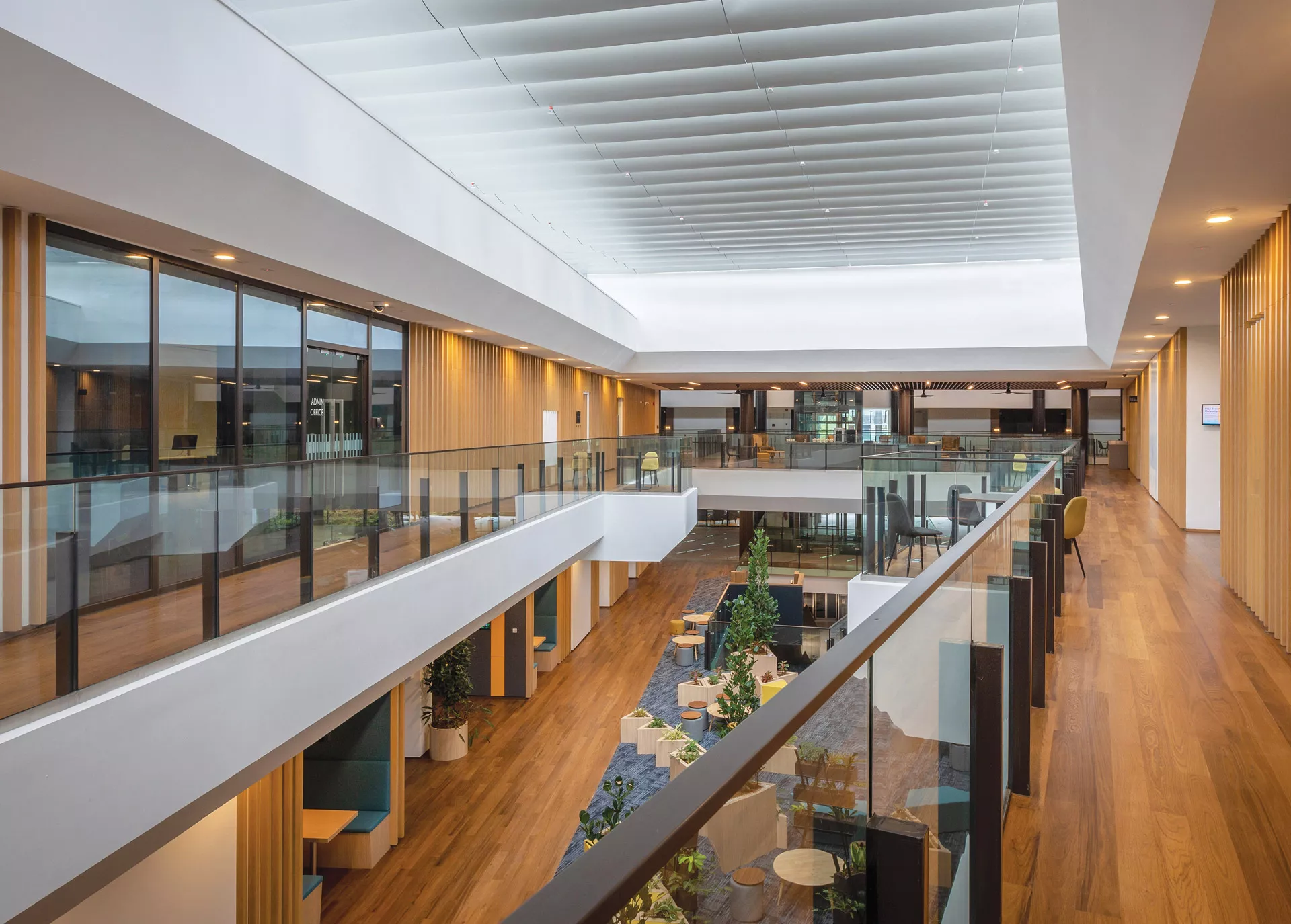 These formal spaces are supported by breakout lounges, amphitheatres, and touchdown zones that encourage informal collaboration and networking. Open workspaces with mobile furnishings and integrated discussion areas, replace tall cubicles, fostering a more agile, people-centric working environment.
