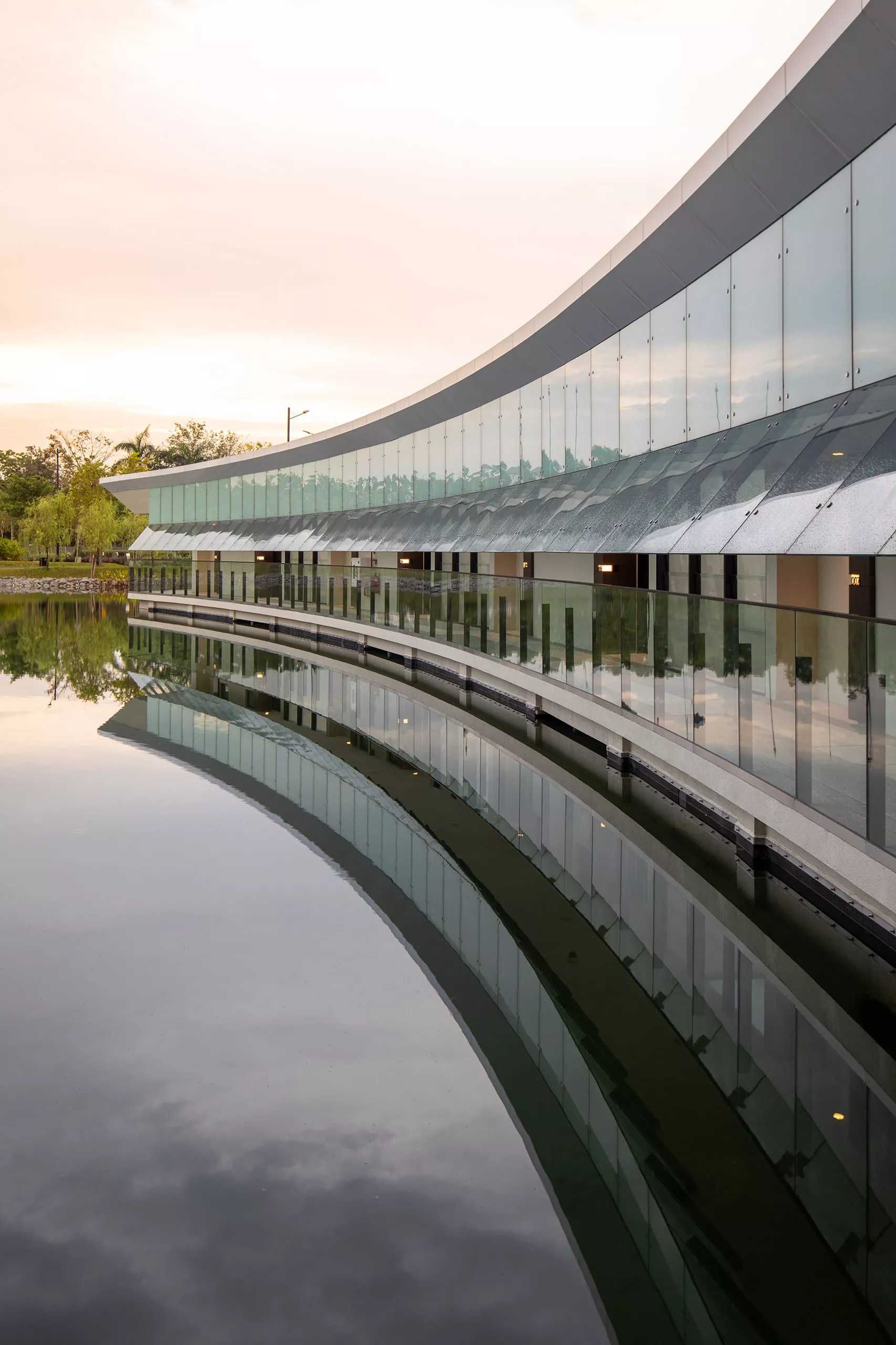 The campus’s sinuous form represents the concept of knowledge being fluid, flowing and ever-growing. The concept of water ripples – where small actions reverberate to create a larger impact – inspires a form that subtly resonates with PETRONAS’ commitment to sustainability.
