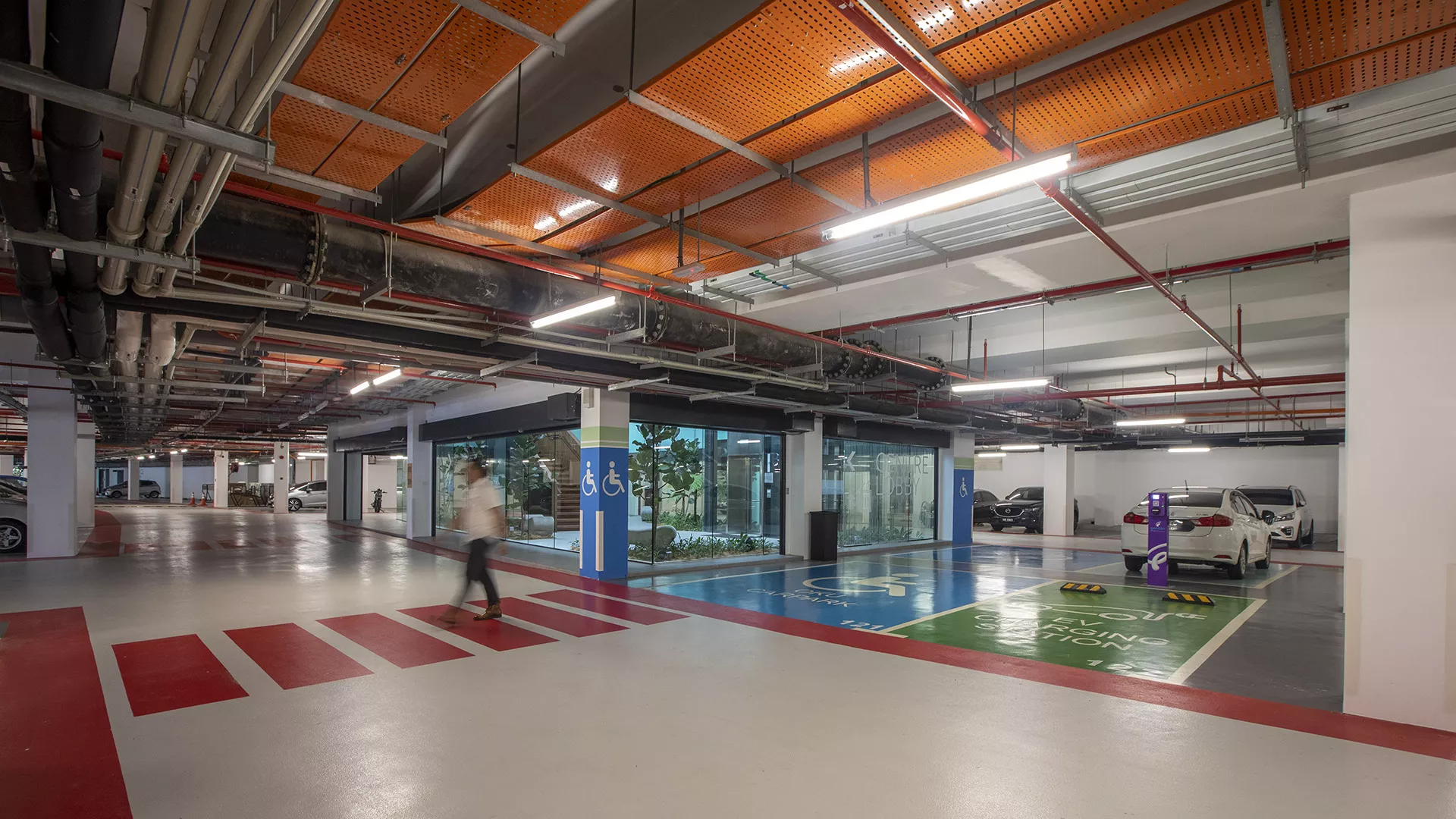 - Rainwater harvesting system and grey water recycling implemented for non-potable uses.