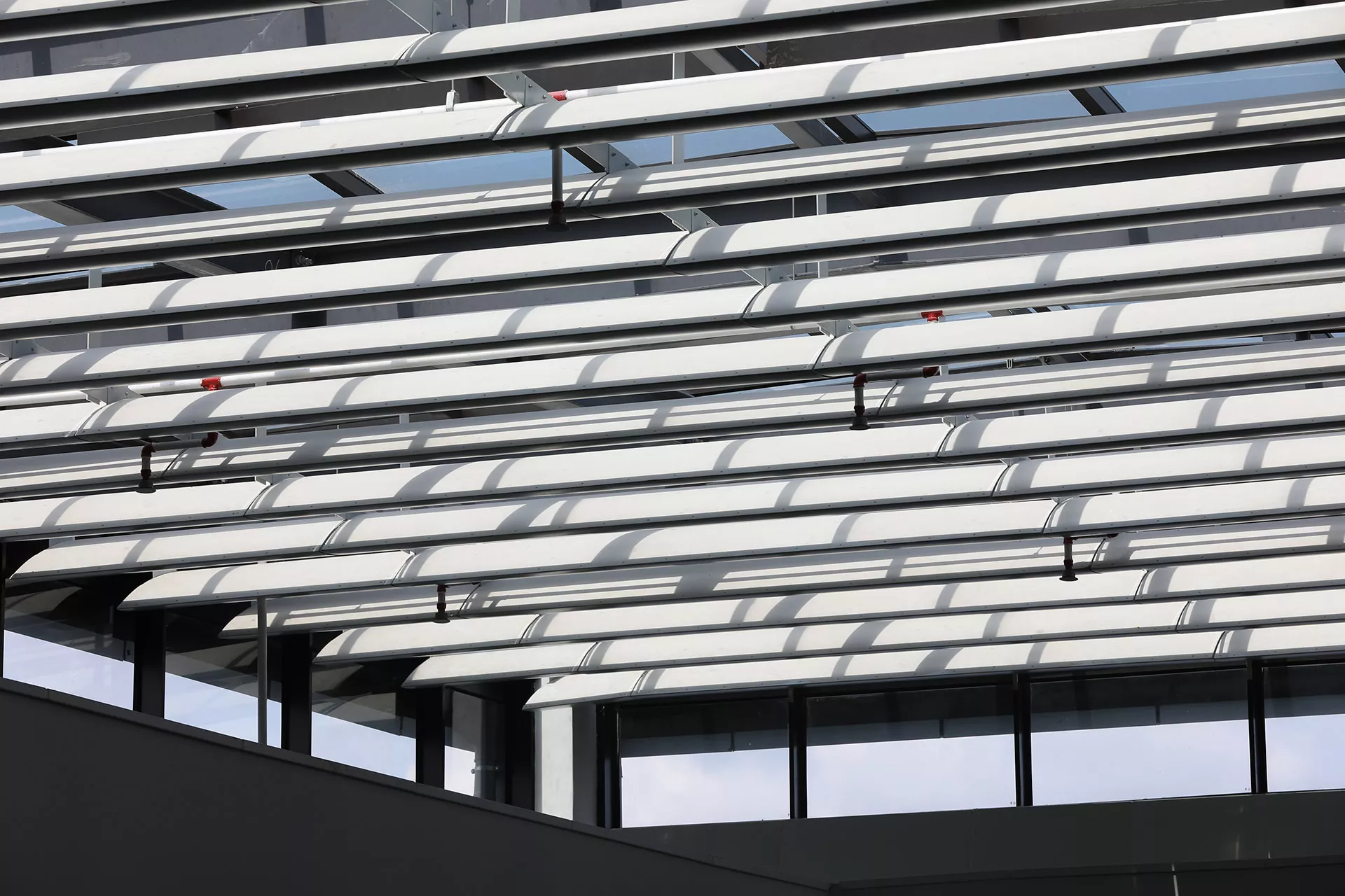 The cascading building form, responding directly to the project’s physical demands, introduces a new skyline to the existing flat greenfield site.
