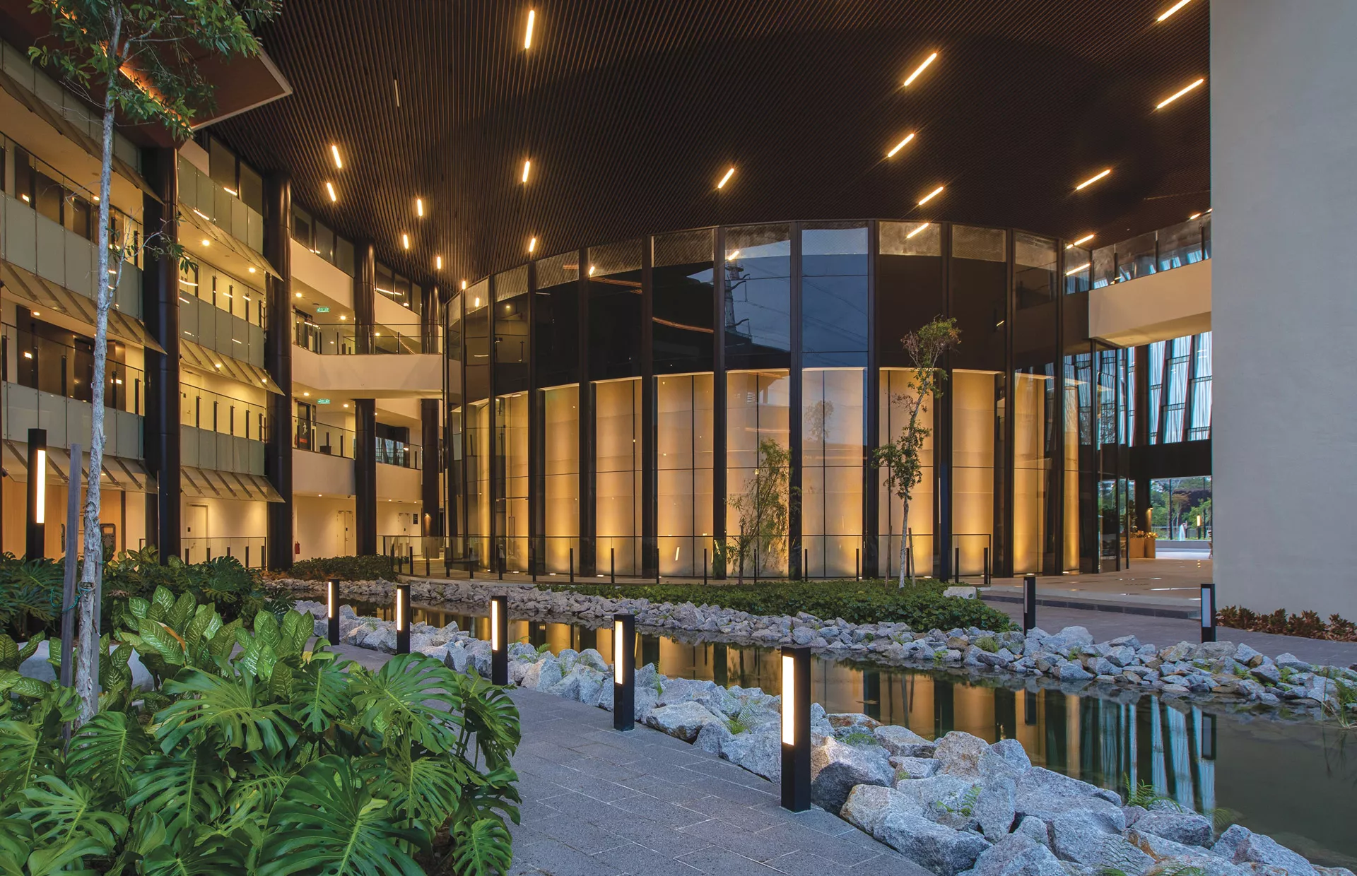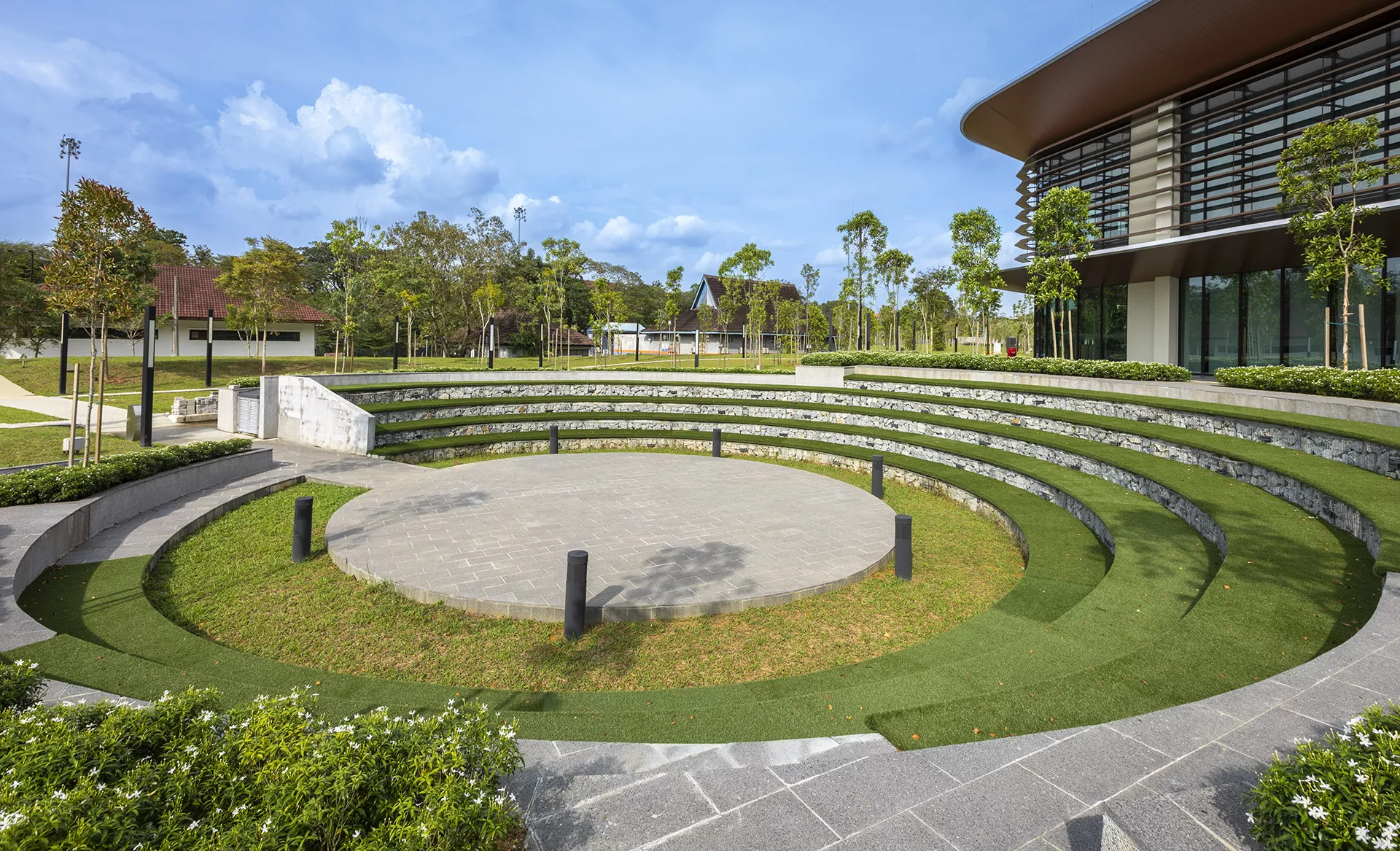 The courtyard design at PLC fuses aesthetic quality and functional purpose, creating a visually compelling and practical design. The grounds of PLC extend the classroom experience into this outdoor setting that balances social and recreational performance. The planting beds, ornamental trees, shrubs and water bodies form a biophilic playground, a space of discovery for the senses as guests stroll along pathways.