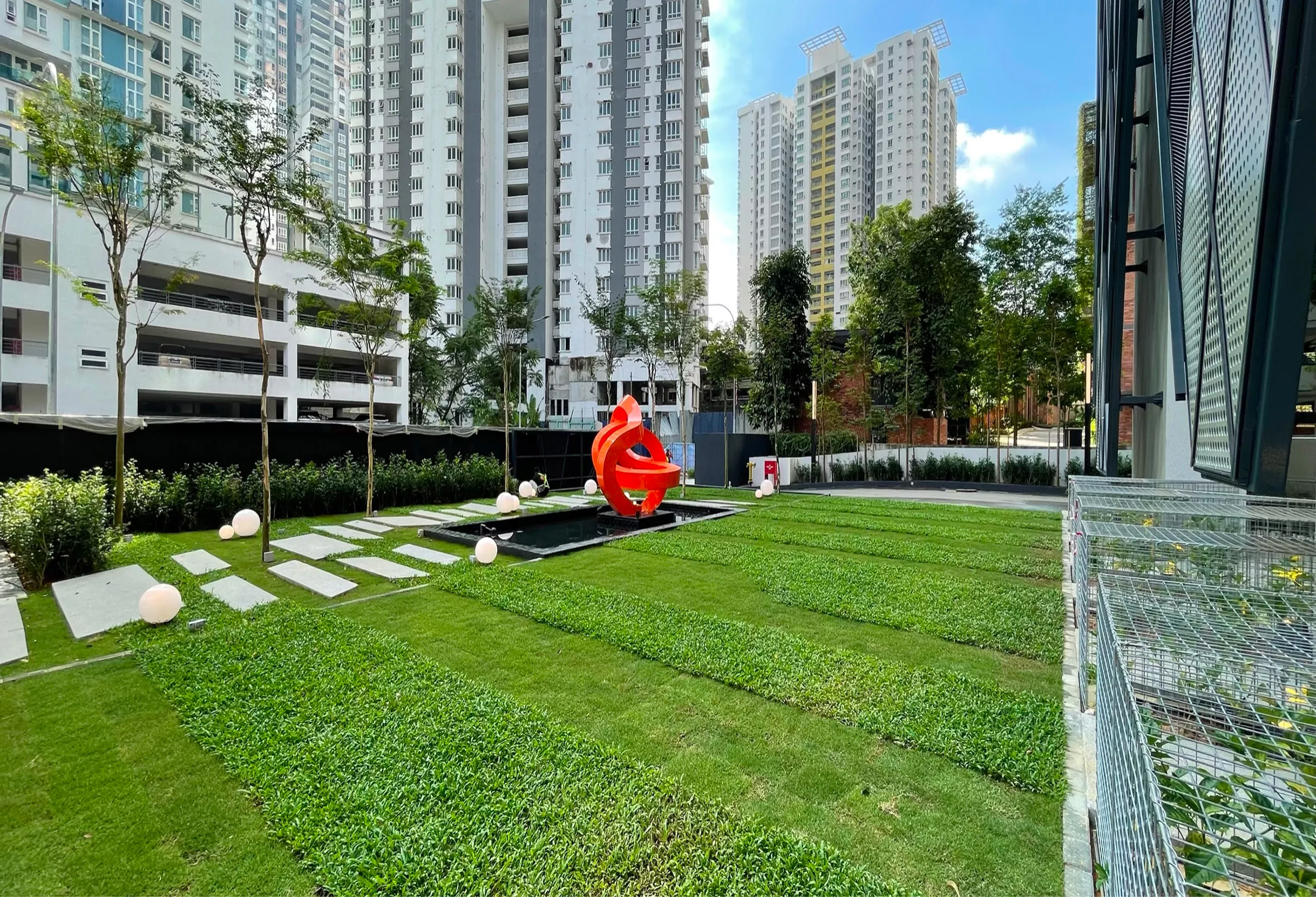 The landscape design enhances the microclimate with strategic planting for shading and cooling, while also providing flexible social and recreational spaces. These green areas serve as an urban oasis, fostering a sense of community and well-being. The result is a tranquil yet dynamic living environment that reflects the aspirations of modern condominium living in a premier Kuala Lumpur address.