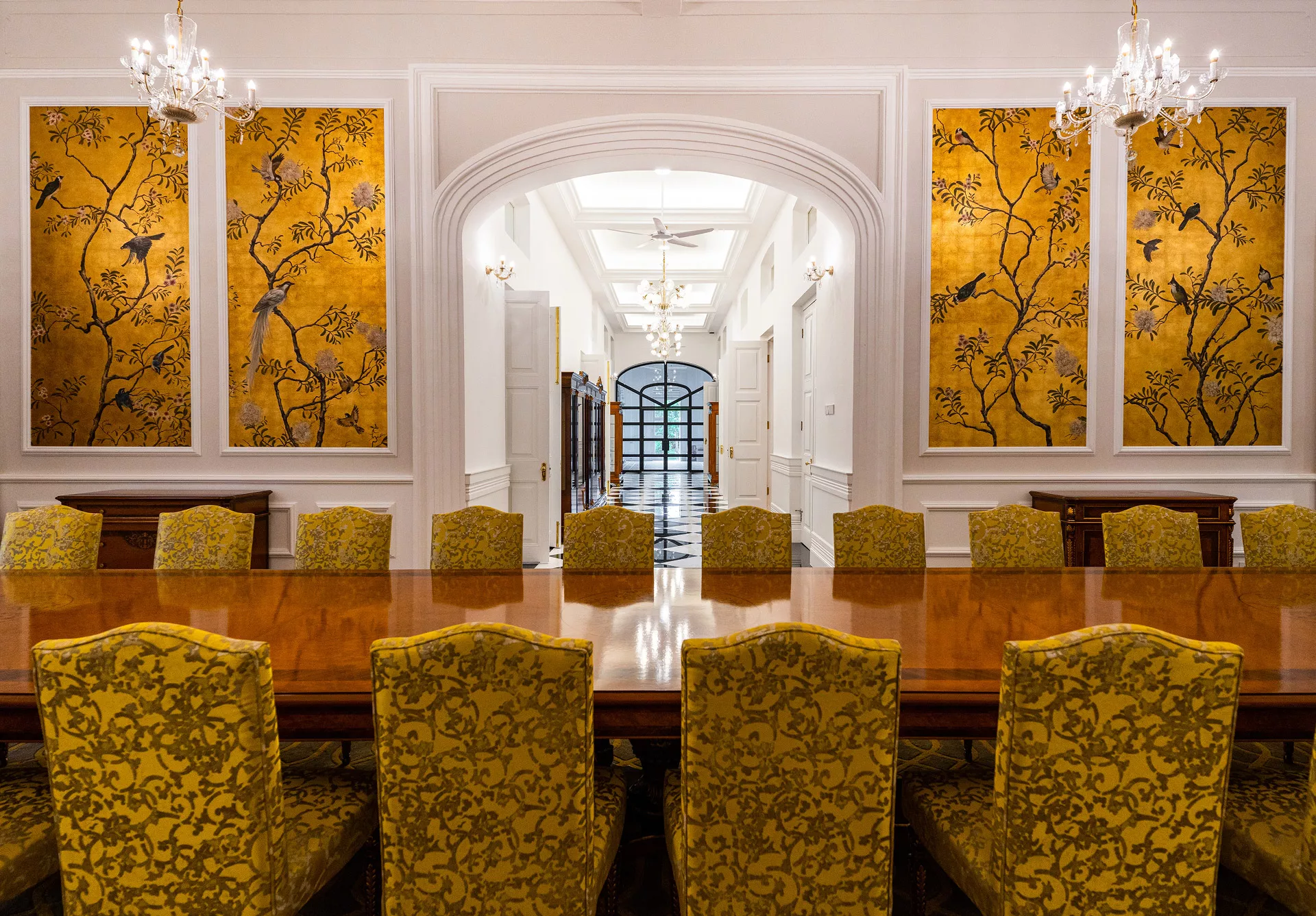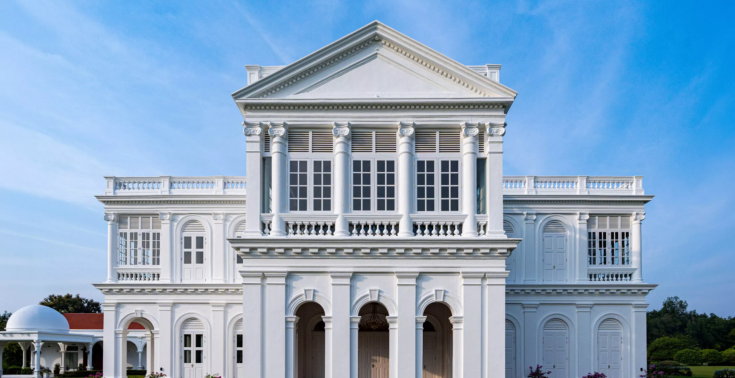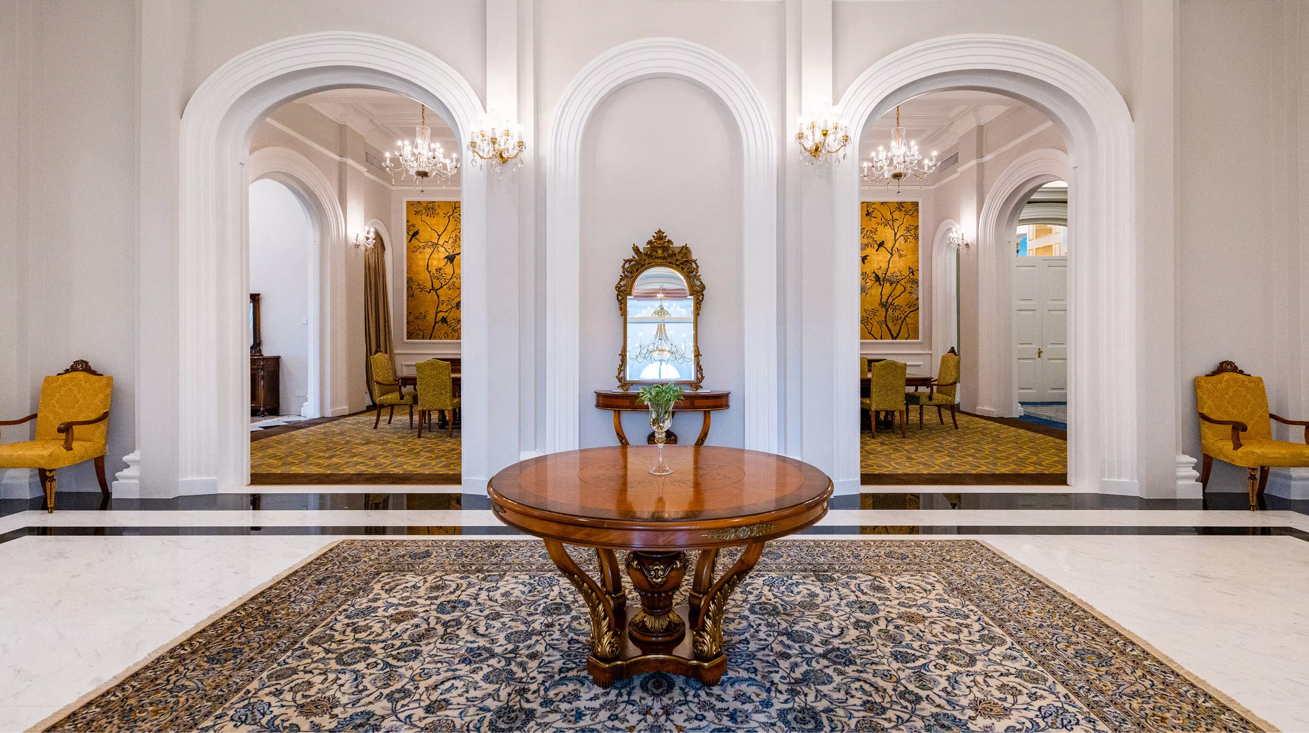 The interior design remains faithful to the building’s British Colonial character, while subtly enhancing the facilities with modern upgrades. Monochromatic tiles and marble surfaces, crisp white wainscoting, and gold chinoiserie details create a sophisticated palette that balances vintage charm with modern functionality.