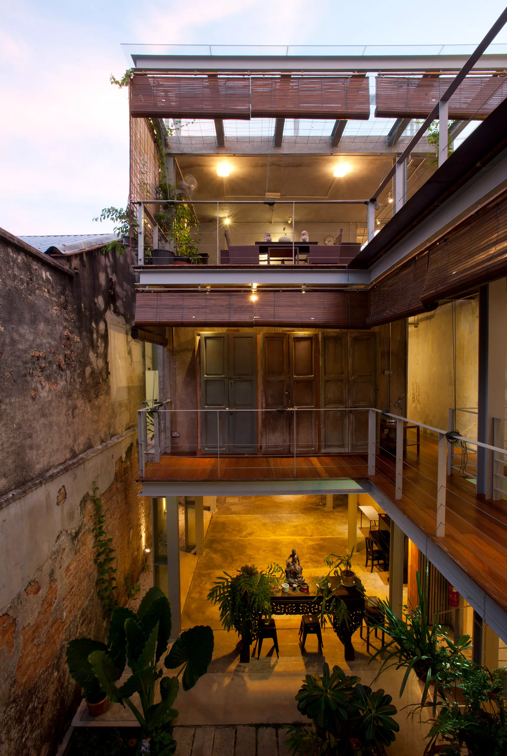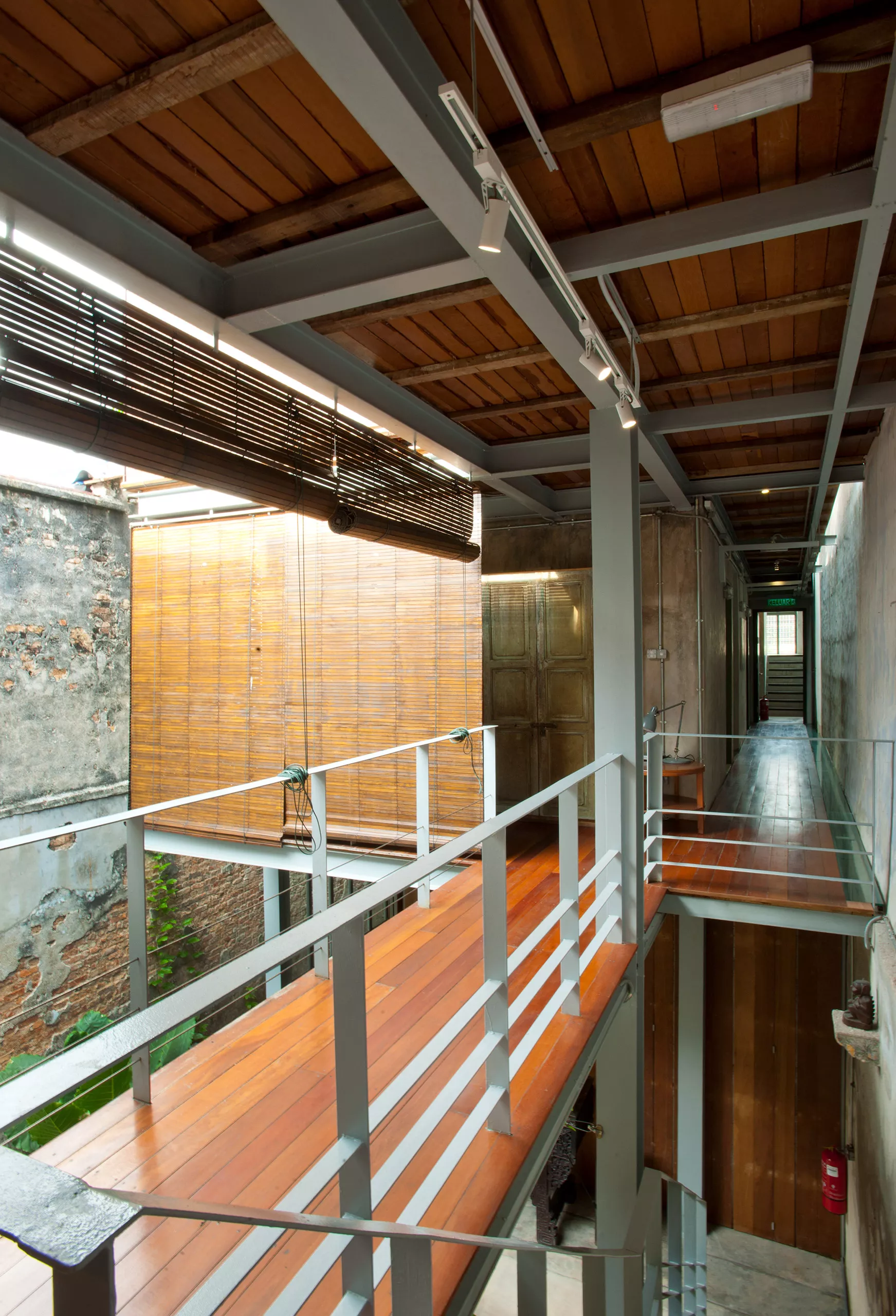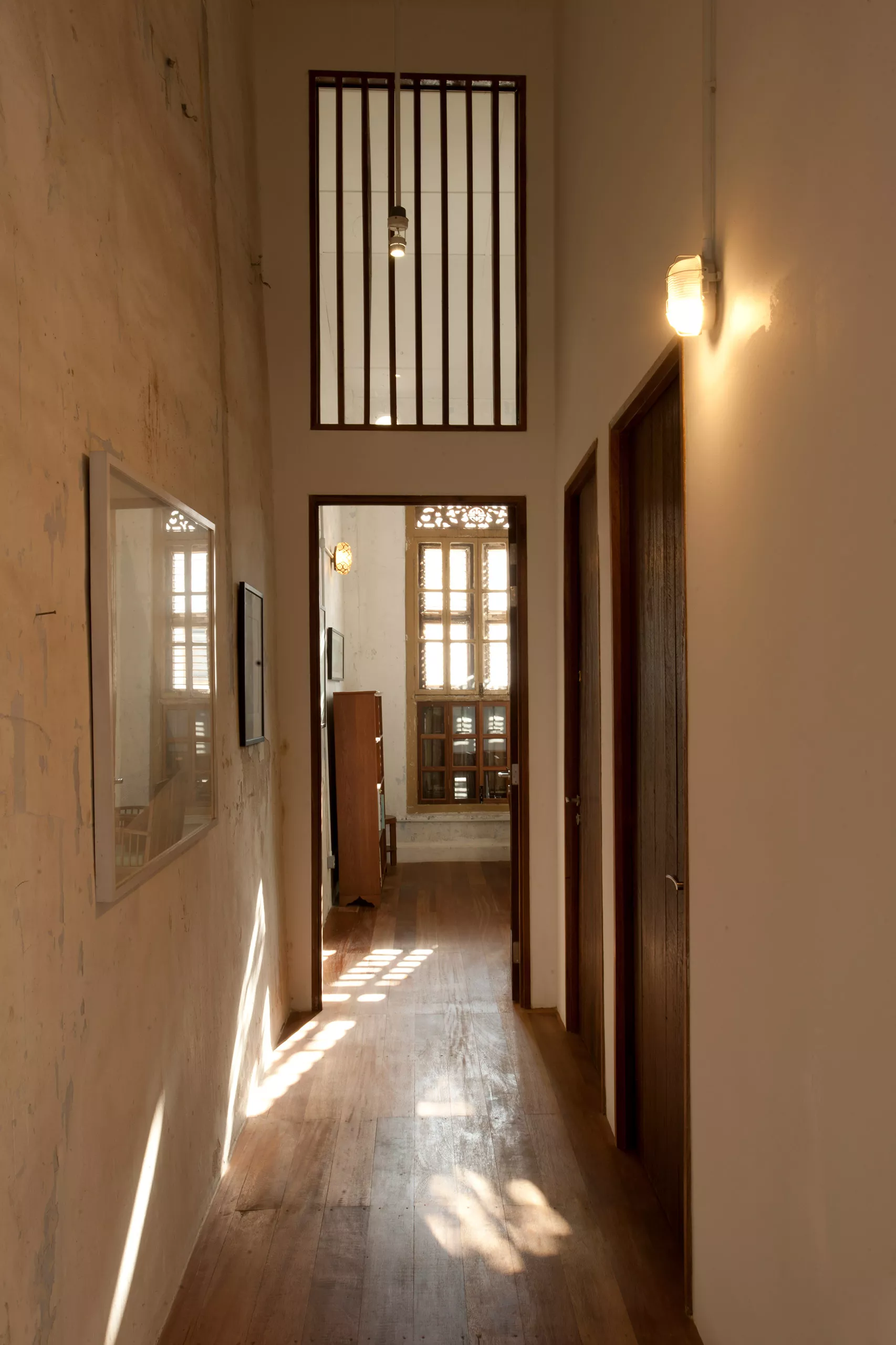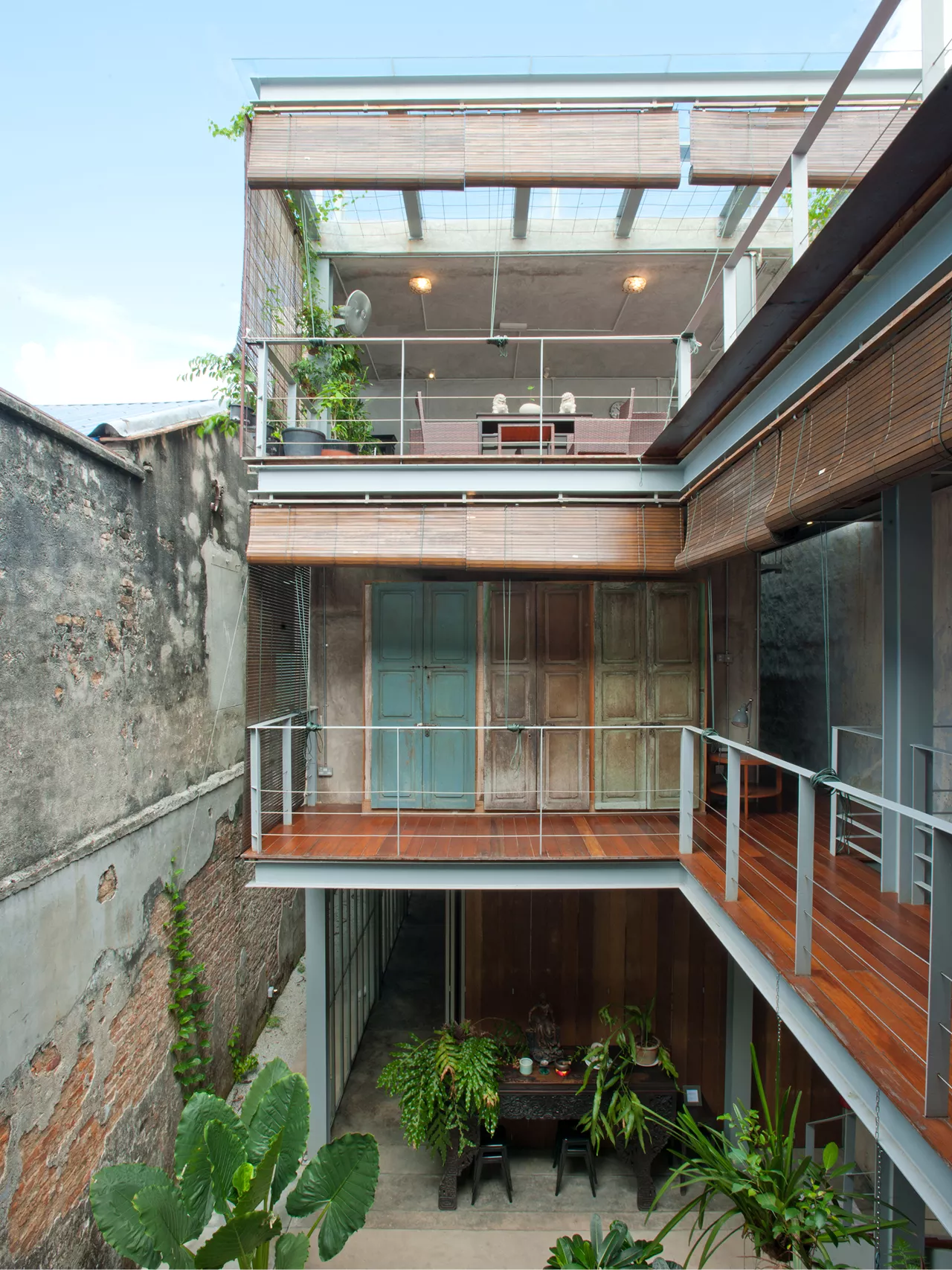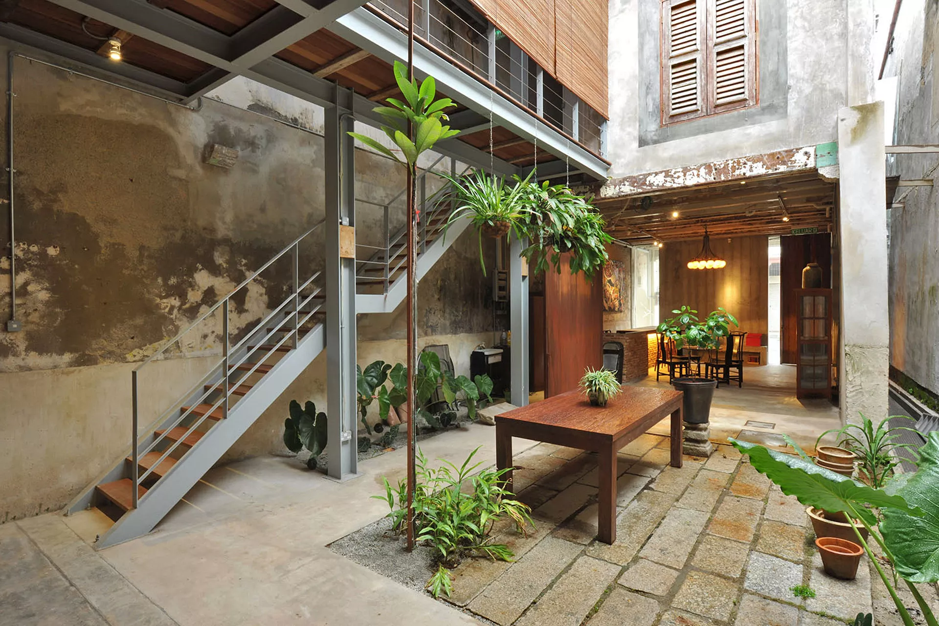 Significant structural deterioration at the rear necessitated replacement, allowing for a contemporary intervention that contrasts yet complements the retained fabric. A central courtyard is introduced as a mediating space between old and new—an outdoor room that anchors the plan, enhances cross-ventilation, and frames shifting patterns of light and monsoon rain. This courtyard becomes the spatial hinge of the project, articulating continuity and contrast while reinforcing the legibility of the building’s evolution over time.