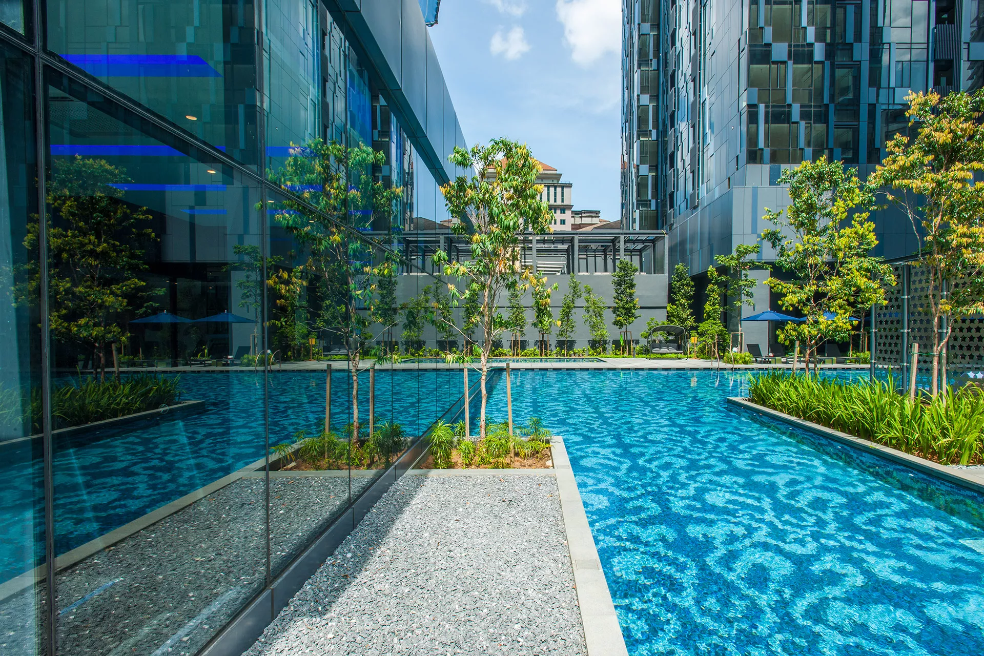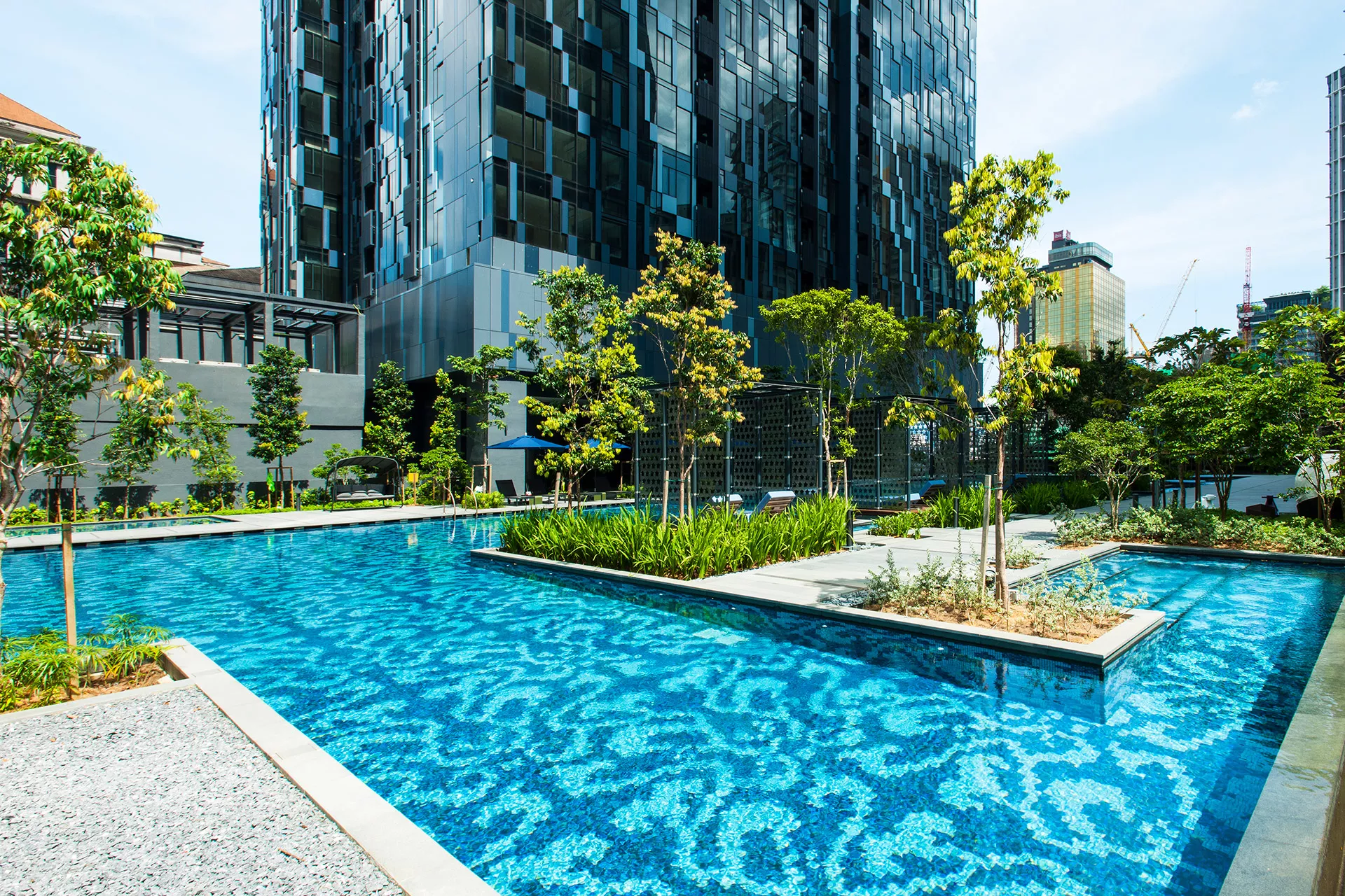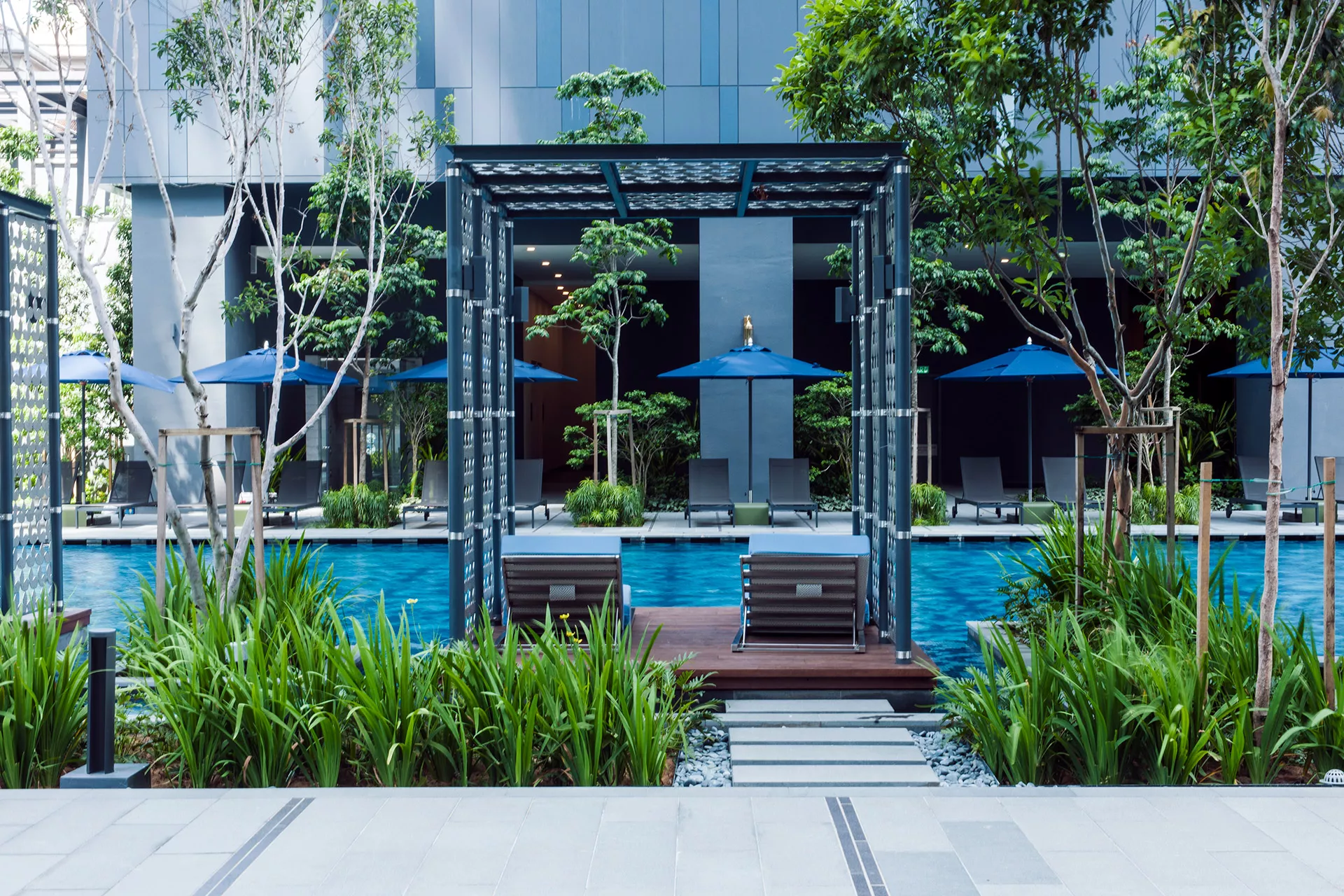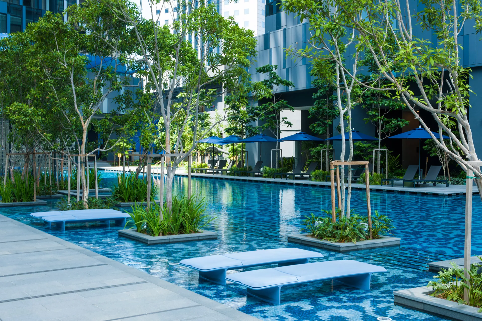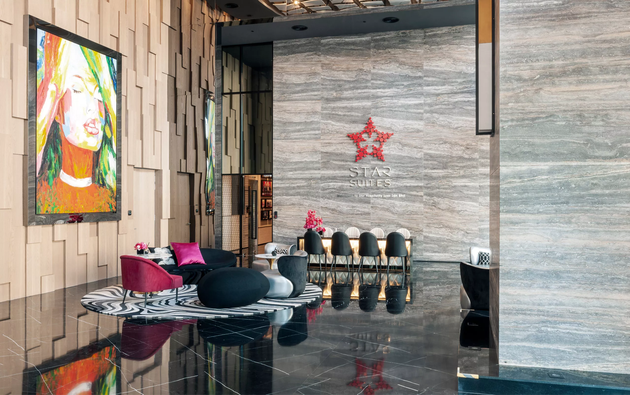 Star Boulevard revitalizes the surrounding streetscape, forming a walkable, mixed-use district anchored by approximately 12,000 m² of retail space and 9,300 m² of lifestyle facilities. At street level, widened pedestrian walkways and active retail frontages foster vibrancy, while landscaped courtyards, water features, sculptural elements, and green pockets provide spaces of respite. Each tower drop-off is carefully designed as a crafted arrival sequence, reinforcing a sense of luxury and place. By integrating retail, public spaces and permeable pedestrian routes, Star Residences cultivates a more animated, connected, and economically burgeoning urban environment.