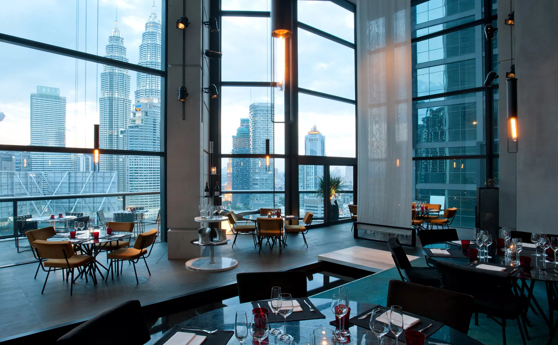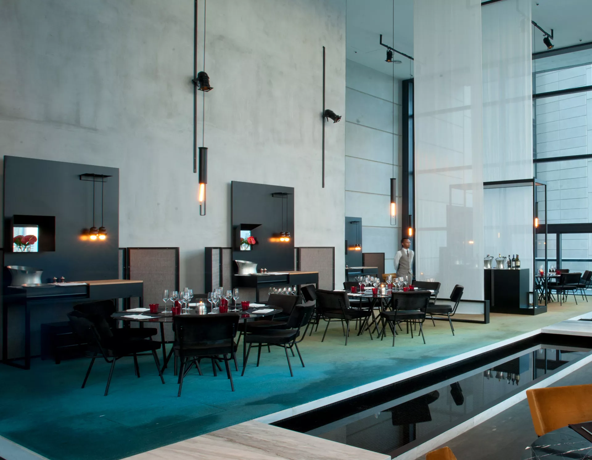 An Immersive Dining Landscape Shaped by Contrast, Craft, and City Skyline