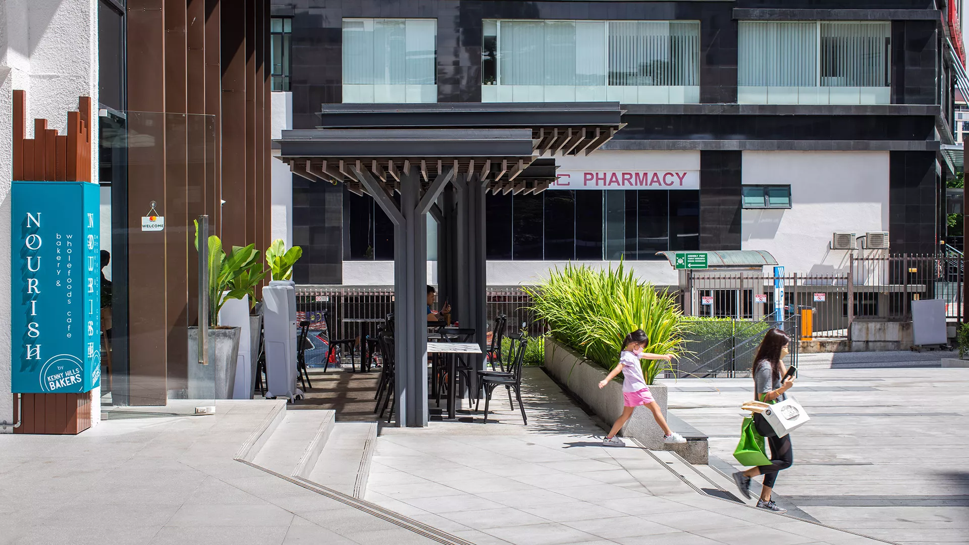 Nestled along Jalan Semantan in Damansara Heights, Kuala Lumpur, The Five @ KPD reimagines a 1970s low-rise government office enclave into a vibrant, community-focused commercial hub. Anchored by its proximity to the MRT station and a lively street plaza, the development transforms five former office blocks into a modern precinct that blends boutique retail, dining, and public spaces with the surrounding lush greenery.