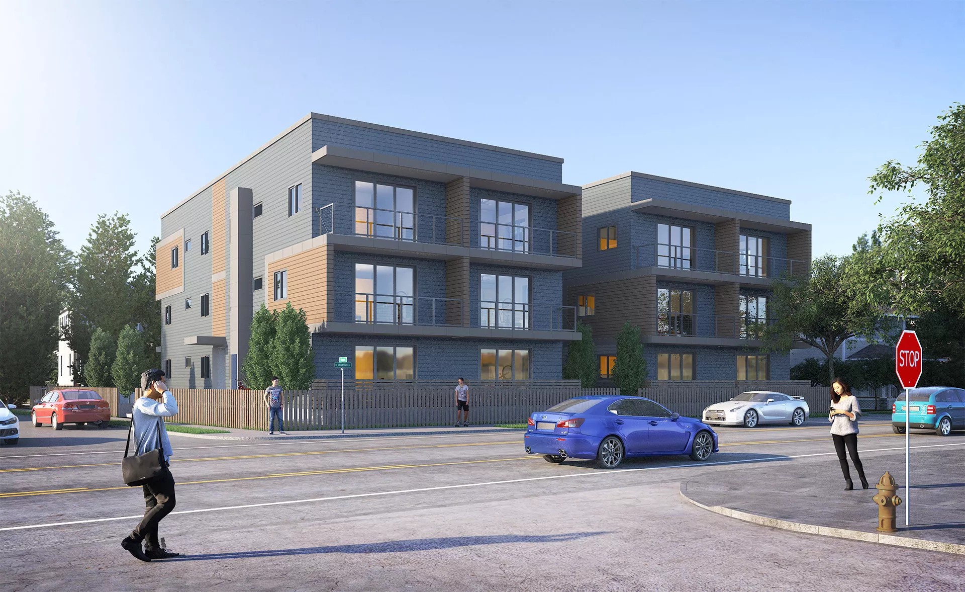 Balconies are incorporated into each unit for daylighting, urban gardening, exercise, or rest — supporting post-pandemic expectations for flexible outdoor living. The roof extensions on the patios allow for more area for the solar panels and cover from the Pacific Northwest rain. As an urban infill building, the triple-pane glass and a tight envelope offer residents a quiet break from the street below. This project aims to prove that small-scale net-zero infill housing can be a sustainable option to address housing shortage on the west coast, and how low-carbon construction can work using solar design even in rainy Portland.