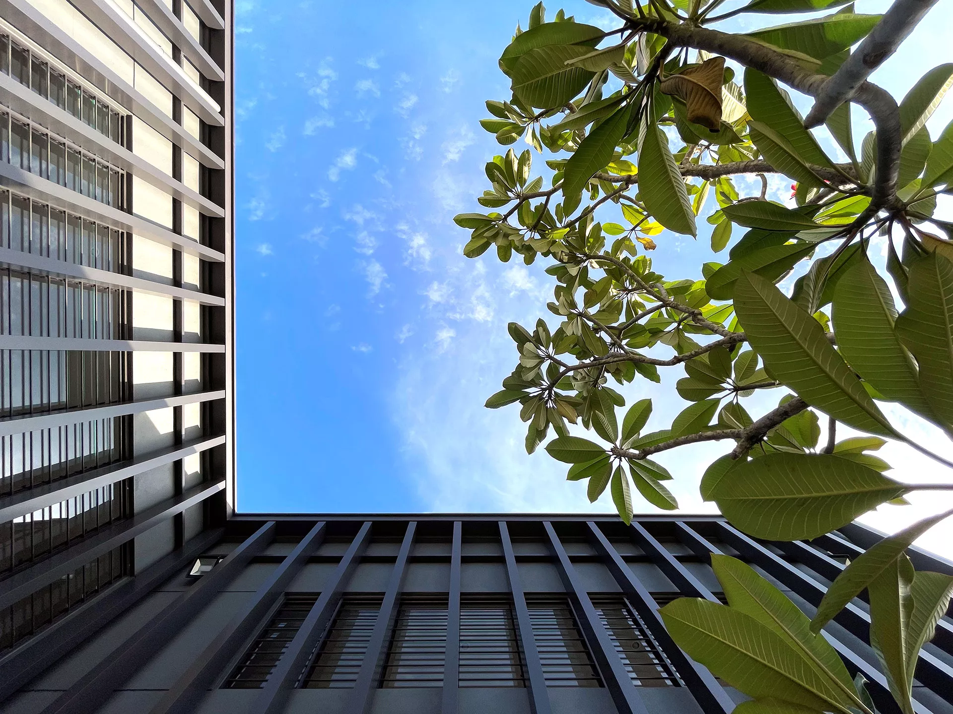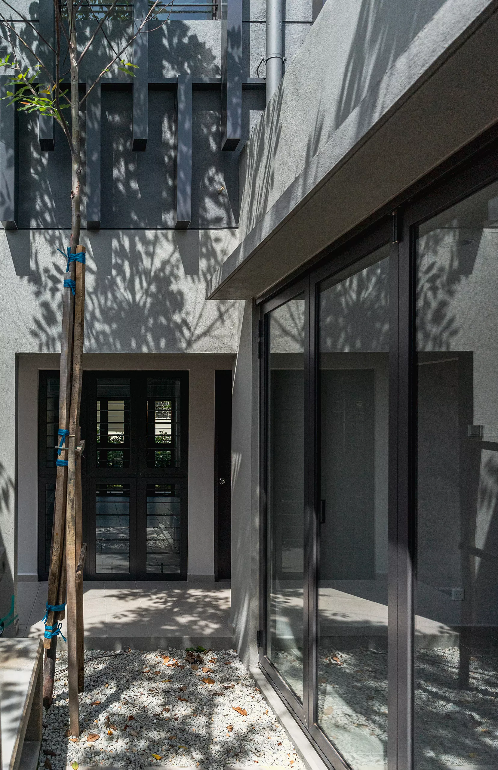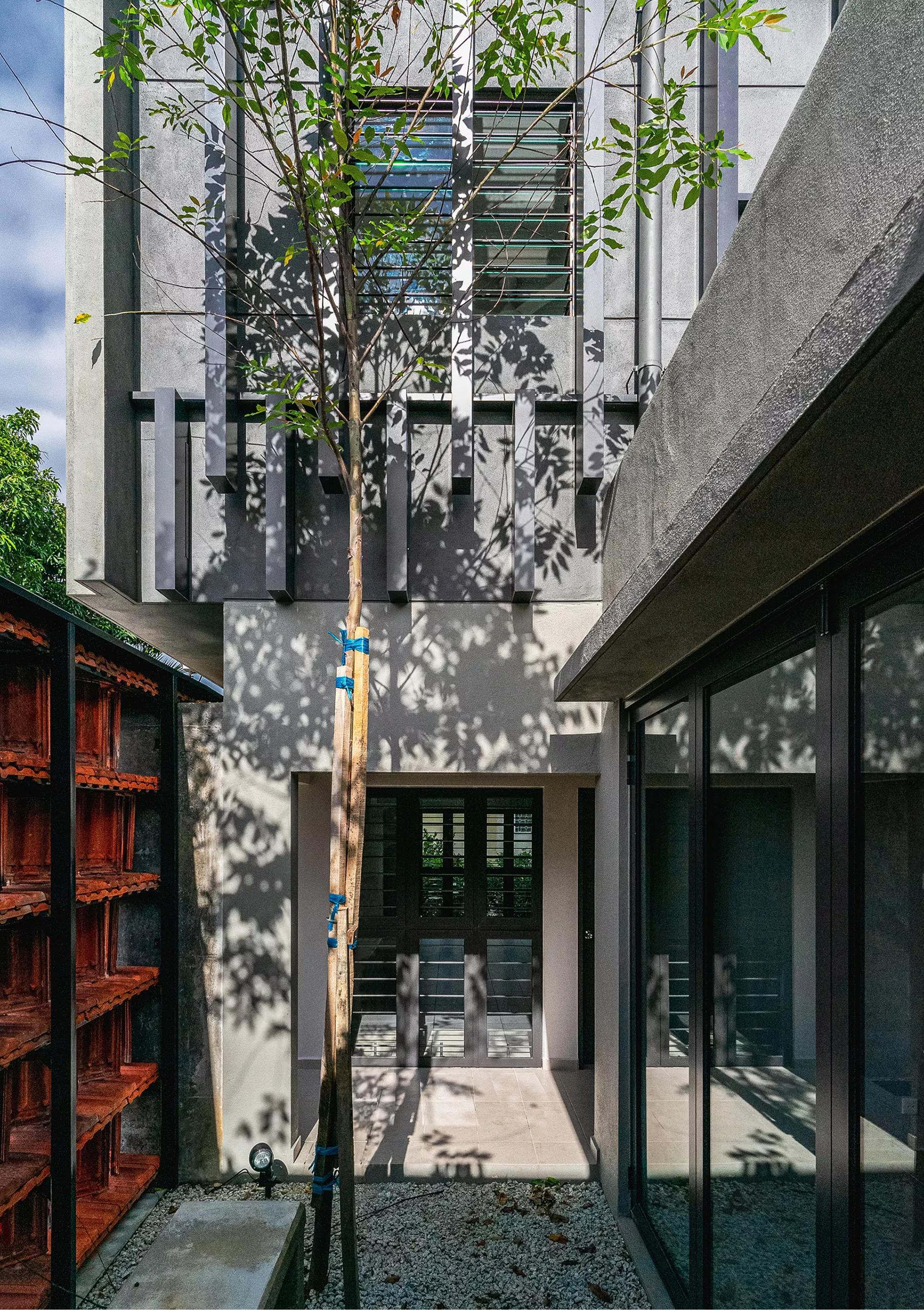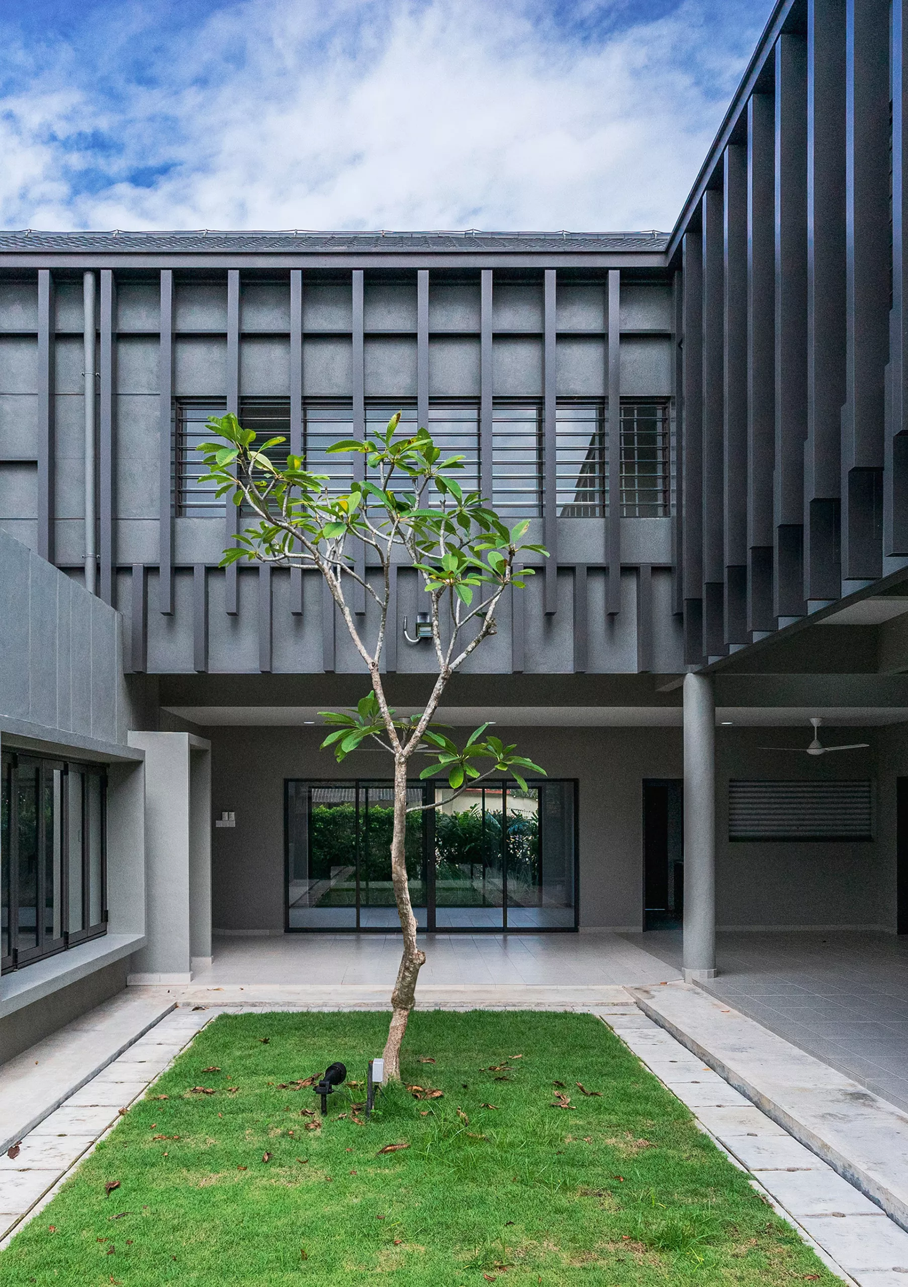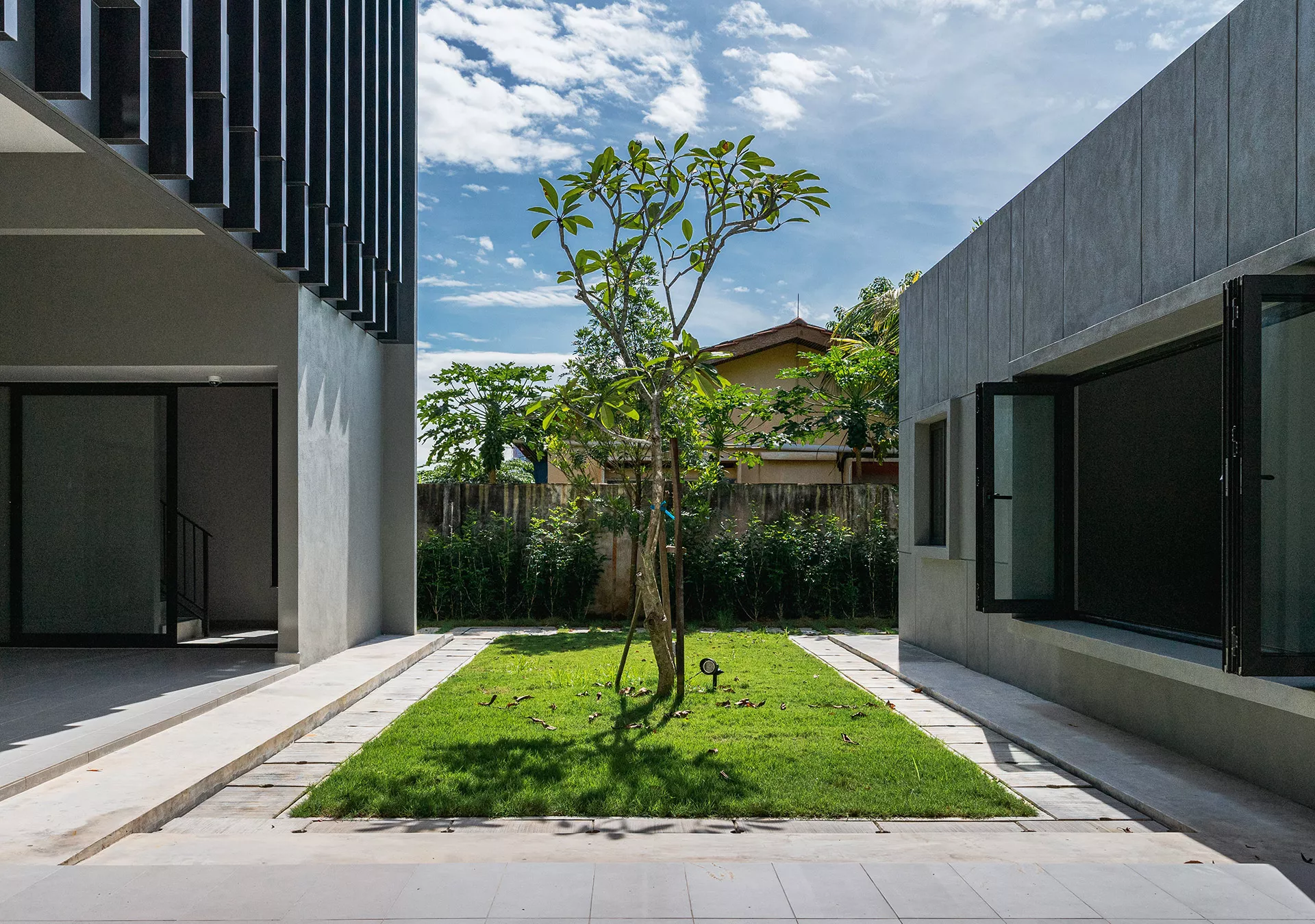 Courtyards and residual spaces function as breathing pockets. Planting and hardscape are deployed with intention rather than decoration, framing views, filtering light, and introducing moments of pause within the spatial journey.  A restrained palette of tropical planting reinforces continuity and calm, while simple, tactile hardscape materials are allowed to weather over time.